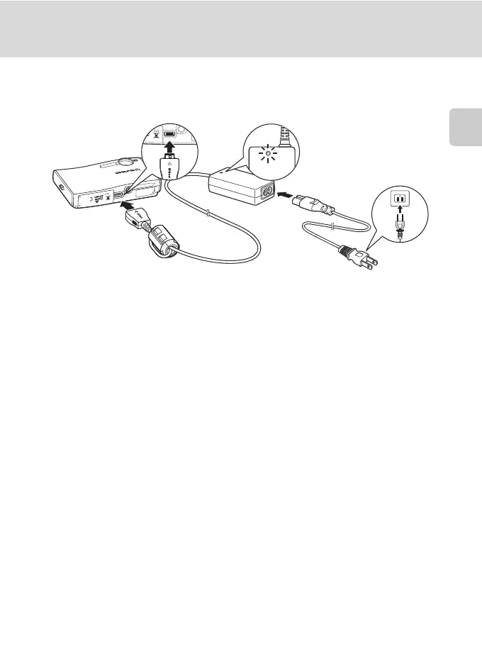 the camera, make sure that the camera is turned off, and connect the AC adapter to the