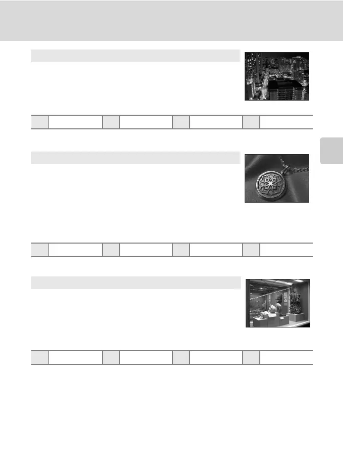 • Camera focuses at infinity. The AF indicator (c 28) always