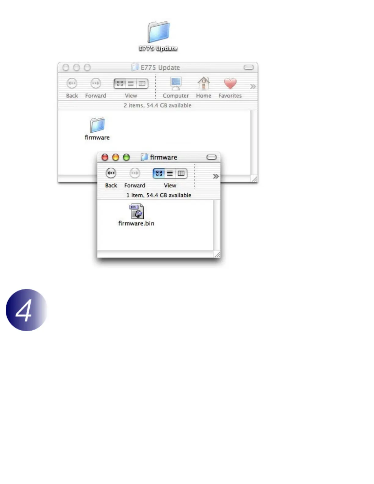The firmware can be copied to the camera memory card either by connecting the computer directly to