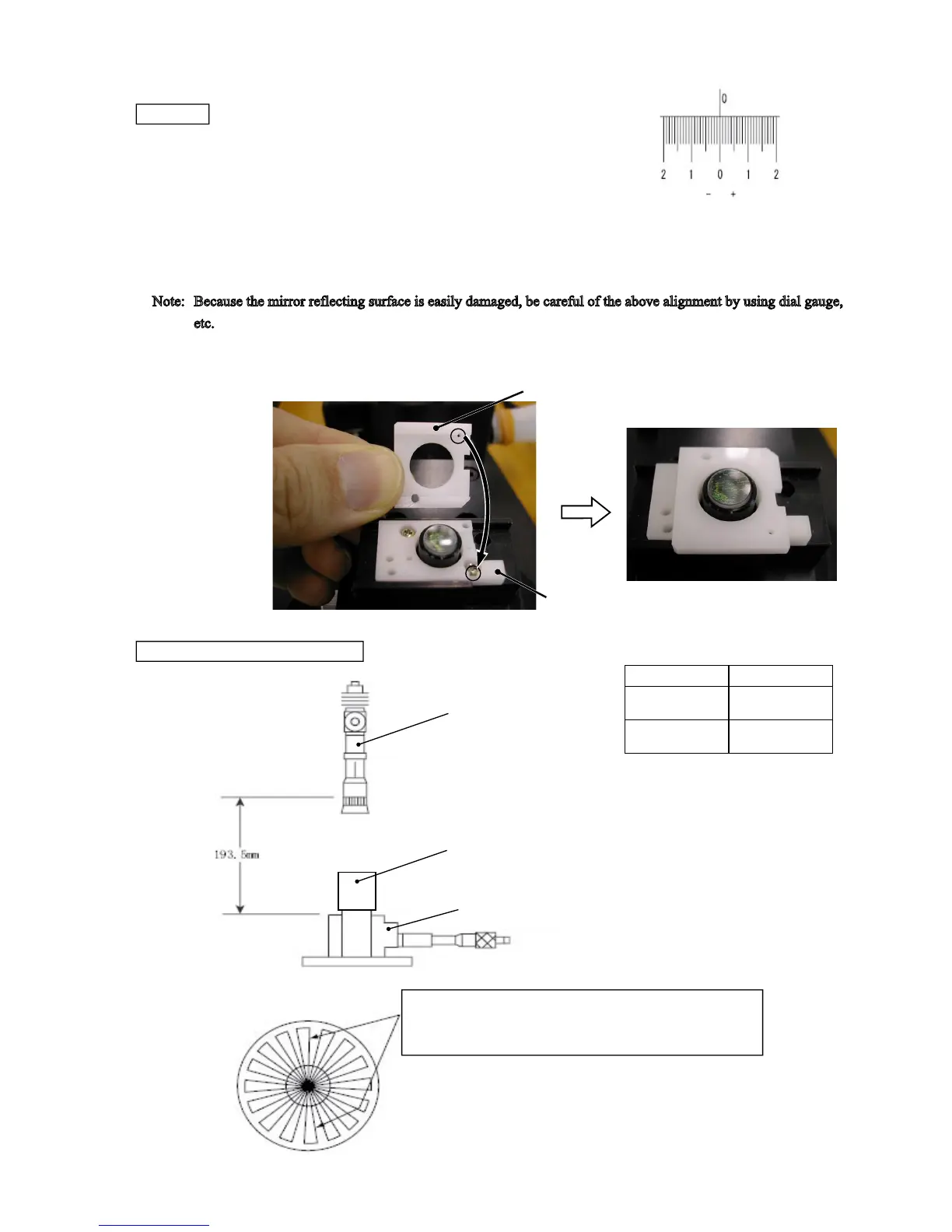 Because the mirror reflecting surface is easily damaged, be careful of the above alignment by using dial gauge,