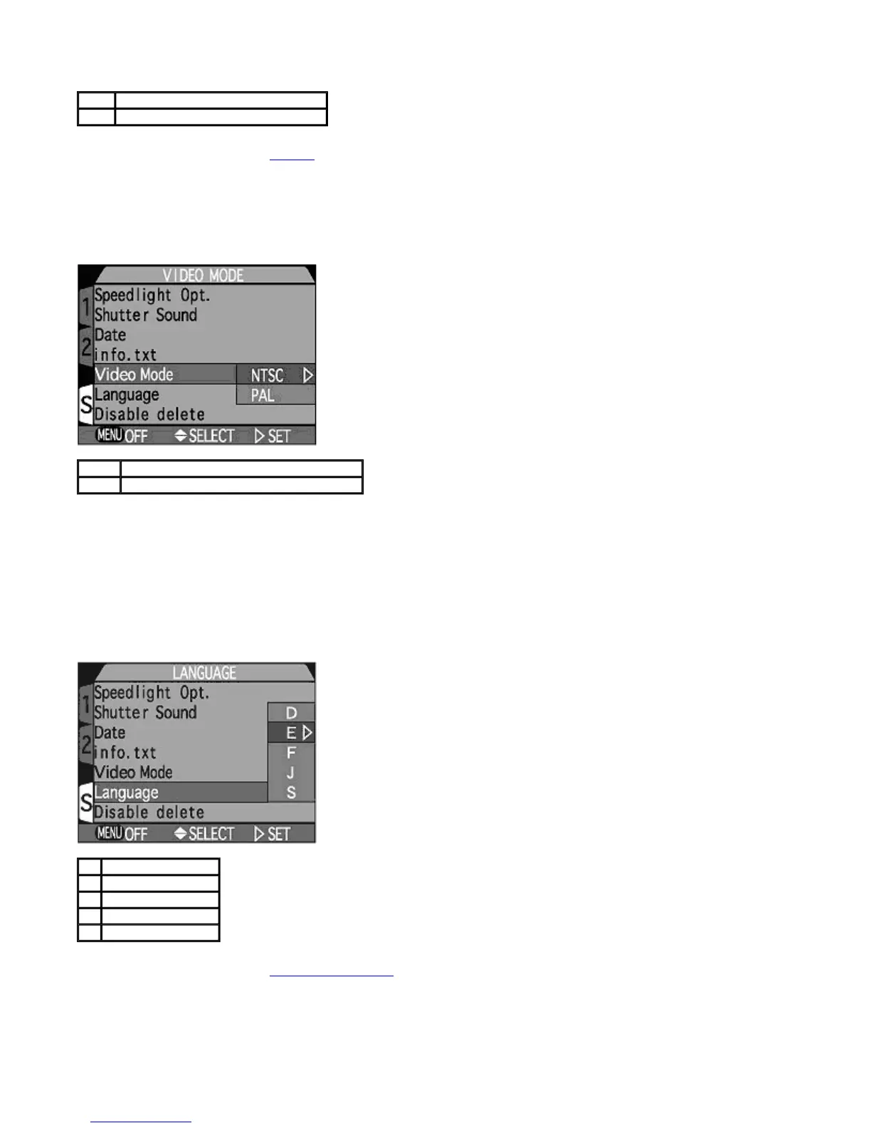 sub-menu to choose the language used in menus and messages displayed by the camera.