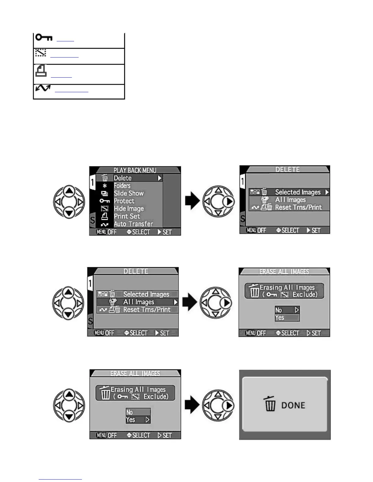 dialog, detailed option menu or thumbnails to be selected, depending on the particular item.