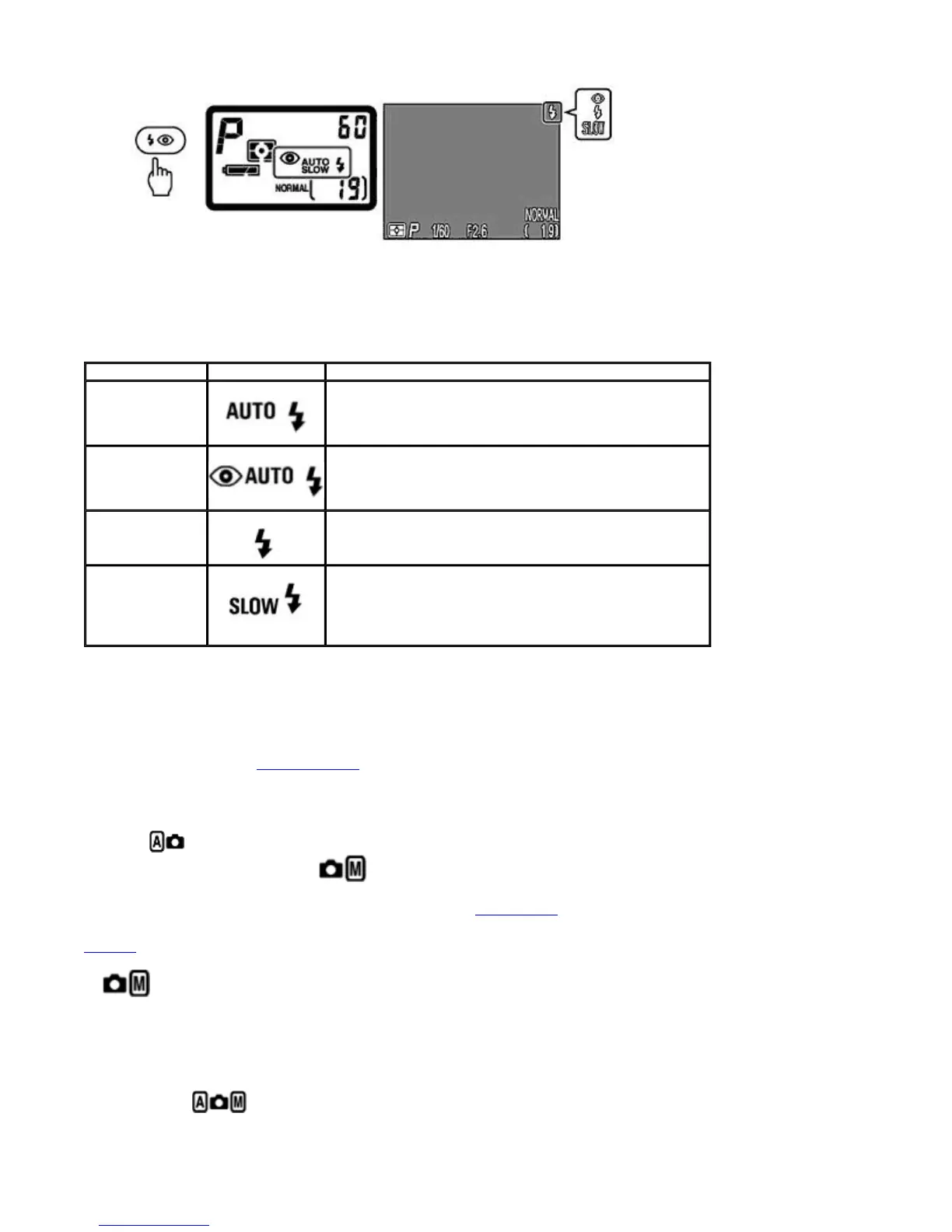 In mode, AUTO flash mode is automatically selected when the built-in Speedlight is released. The previously