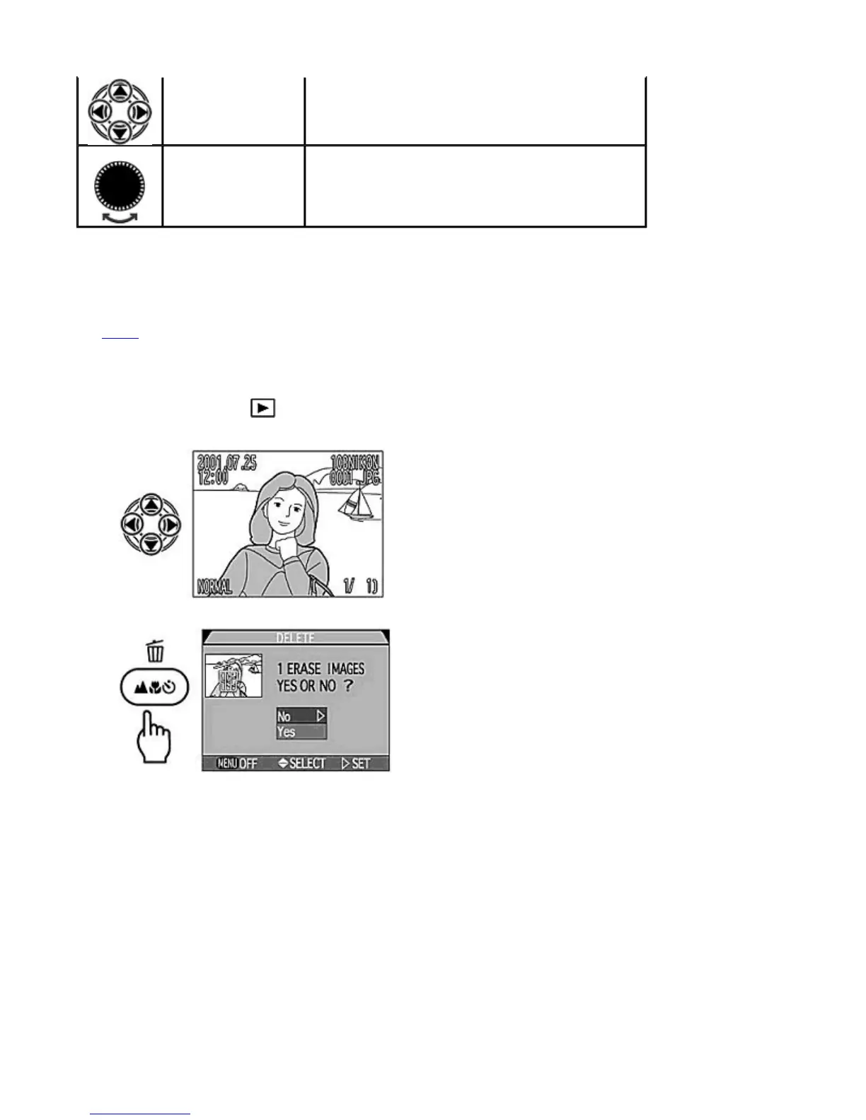 The delete operation is confirmed with a dialog, after which the next photograph is displayed.