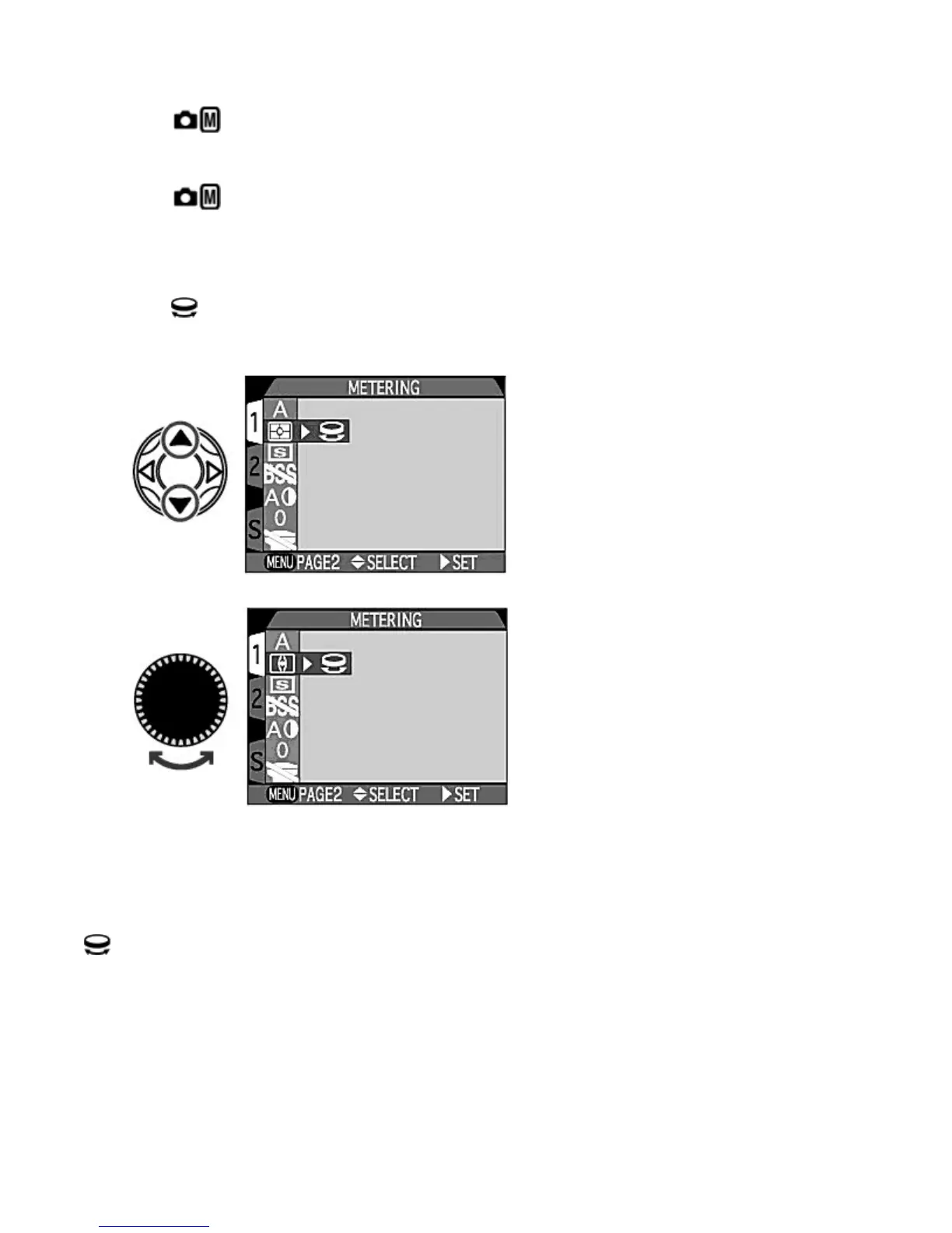 In the Shooting mode, if MENU PAGE 2 is displayed in the lower left corner of the menu screen, pressing the