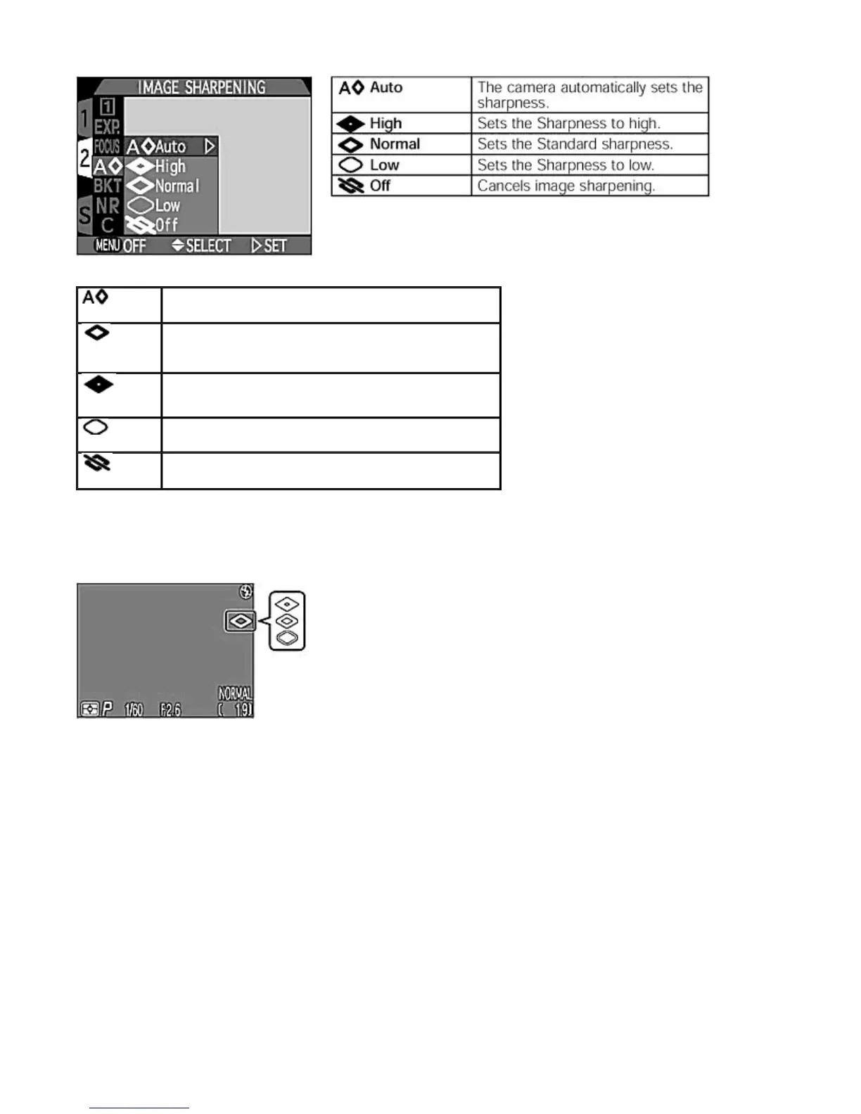 The Image Sharpening indication is displayed on the Monitor when