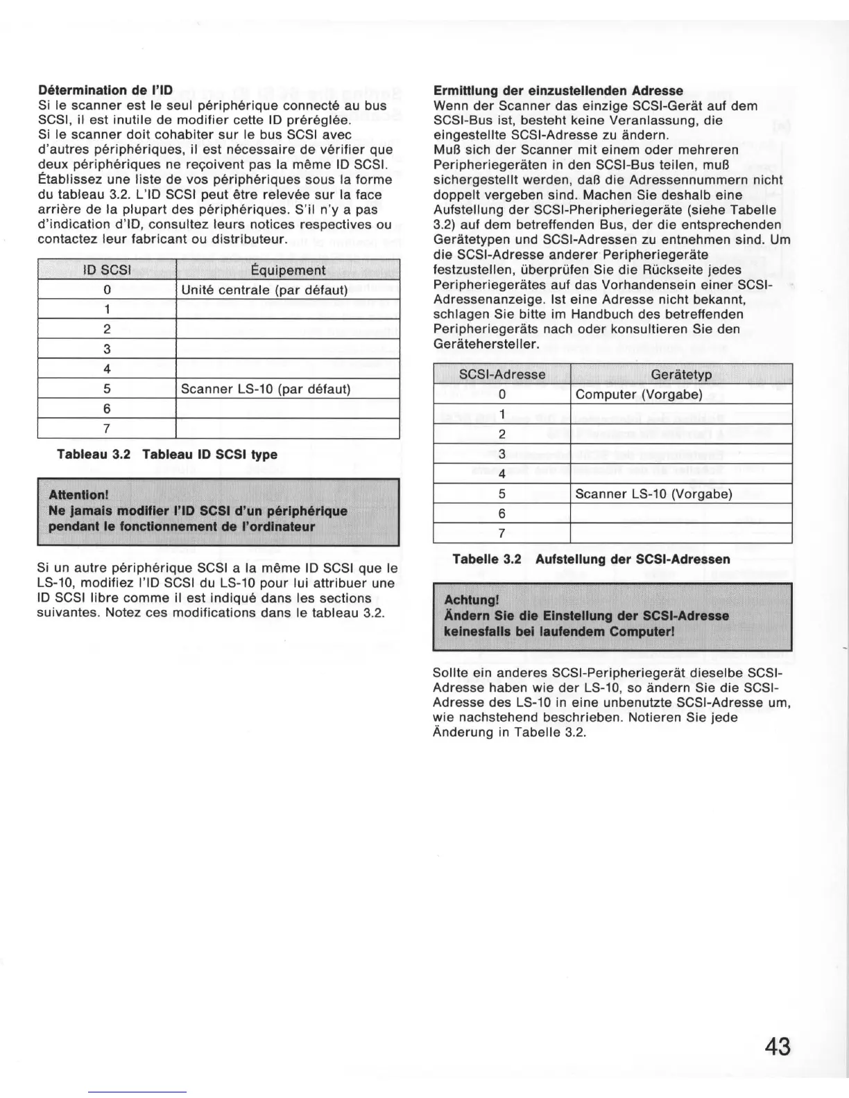 Tabelle 3.2 Aufstellung der SCSI-Adressen