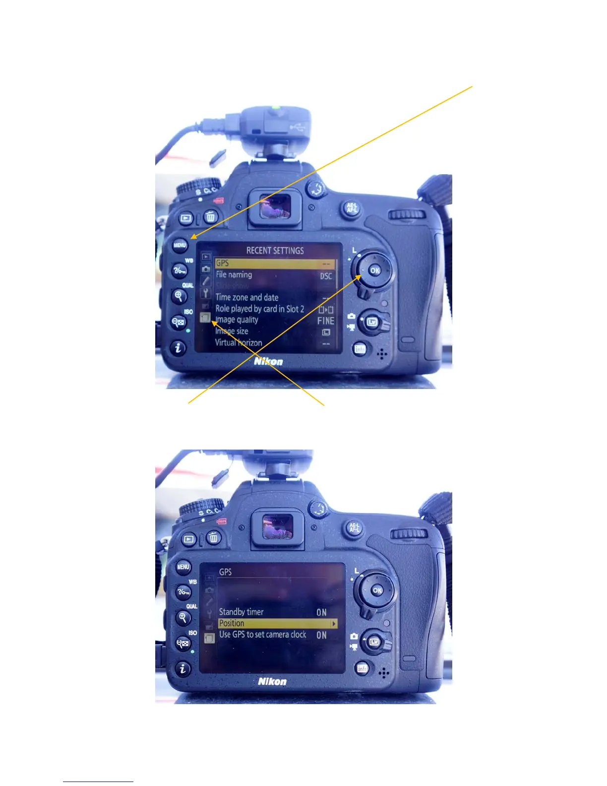 4. MakesurethatthecamerasettingsareappropriatefortheGPS.Pressthe“Menu”button