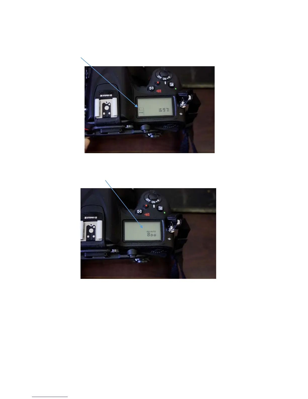 LCDscreenshowingISOsetting–“ISO”buttononbackofcamerabeingheld)