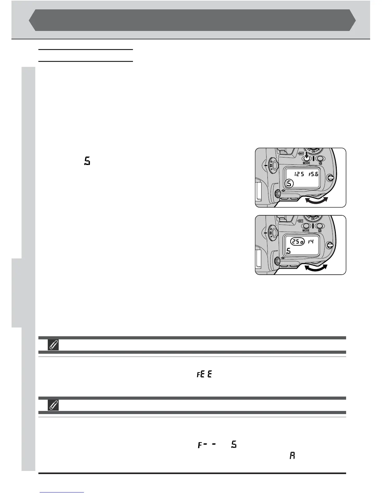 If shutter-priority auto is selected when a non-CPU lens is attached, the exposure mode will