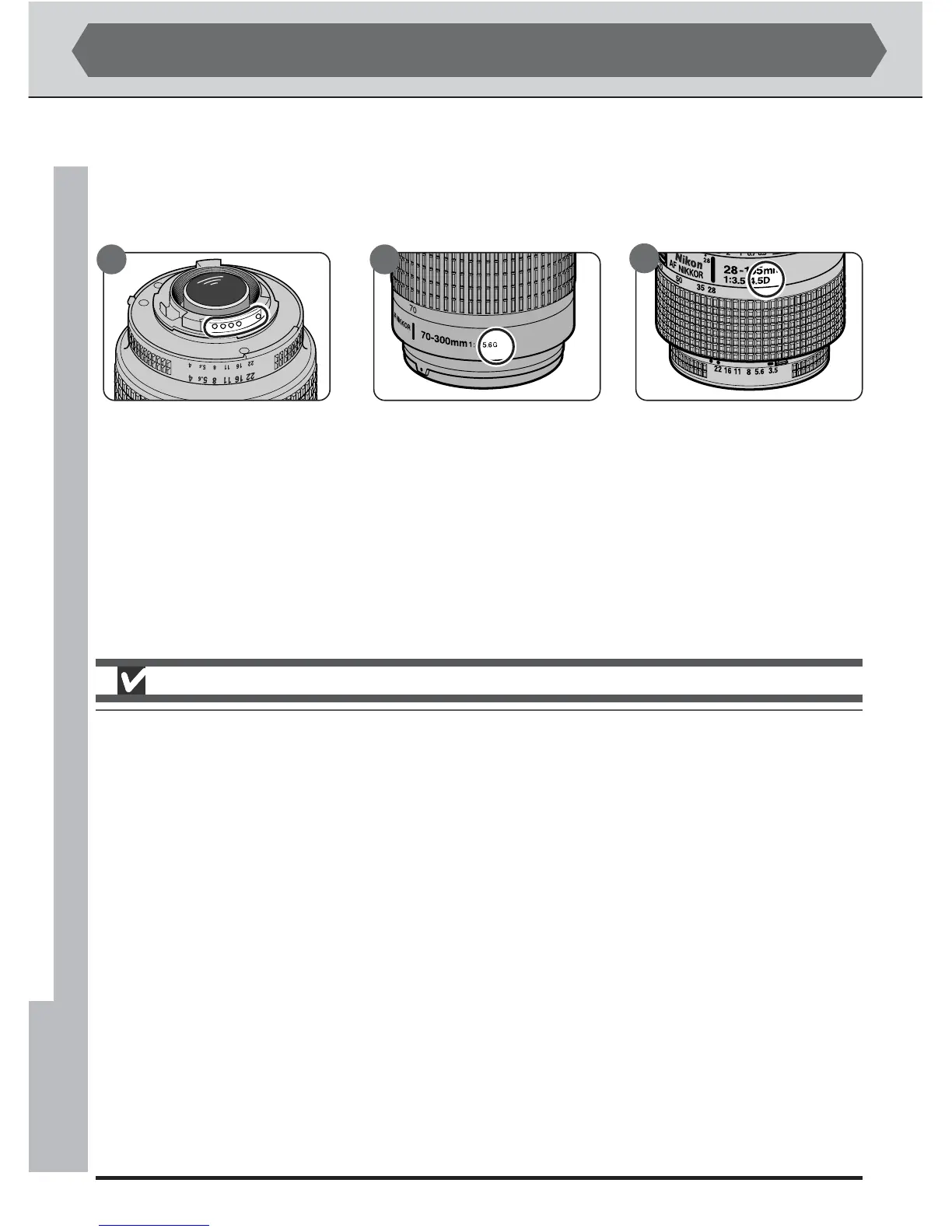 Type G AF-Nikkor lens Type D AF-Nikkor lens