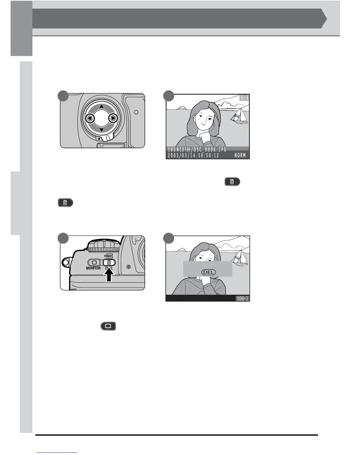 current image for deletion. A confirmation dialog will be displayed (B), press