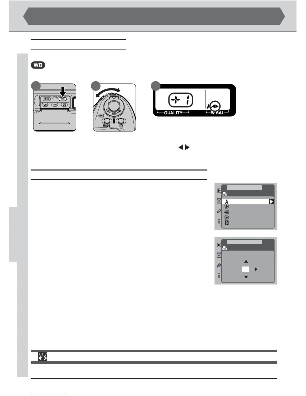At settings other than PRE (preset), white balance can be fine-tuned by pressing the