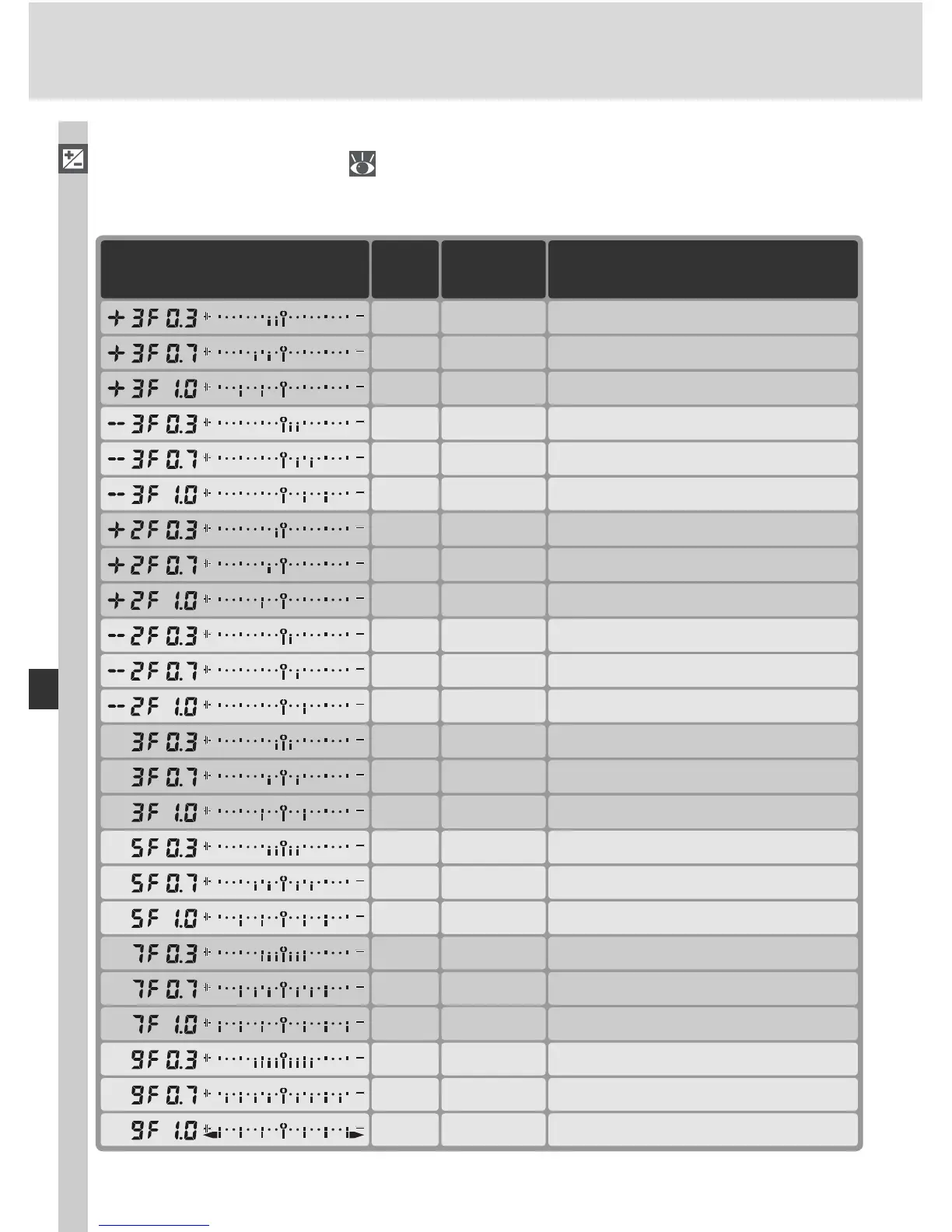 3 EV 0, –2.0, –1.3, –0.7, +0.7, +1.3, +2.0