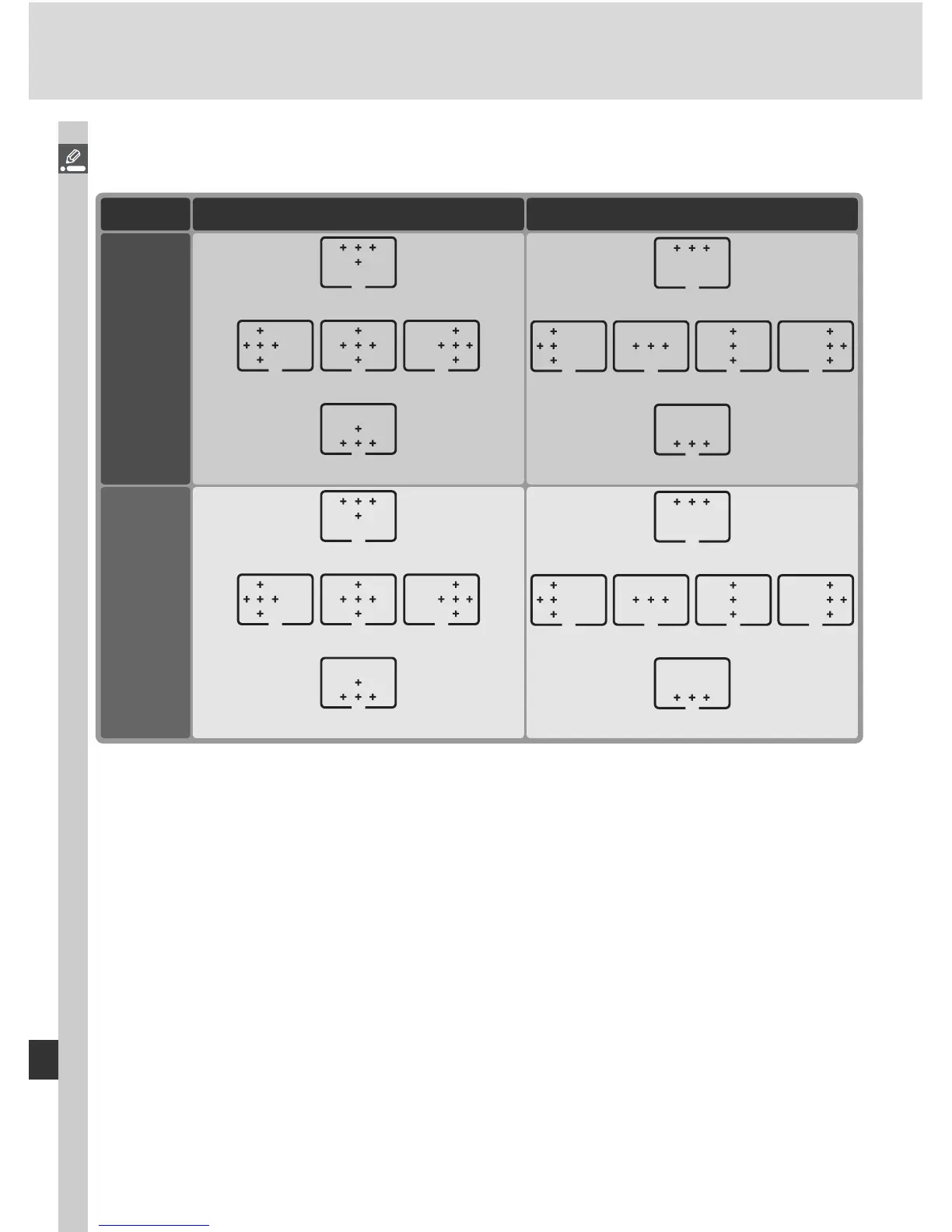 * The center focus-area group is selected by pressing the center of the multi selector