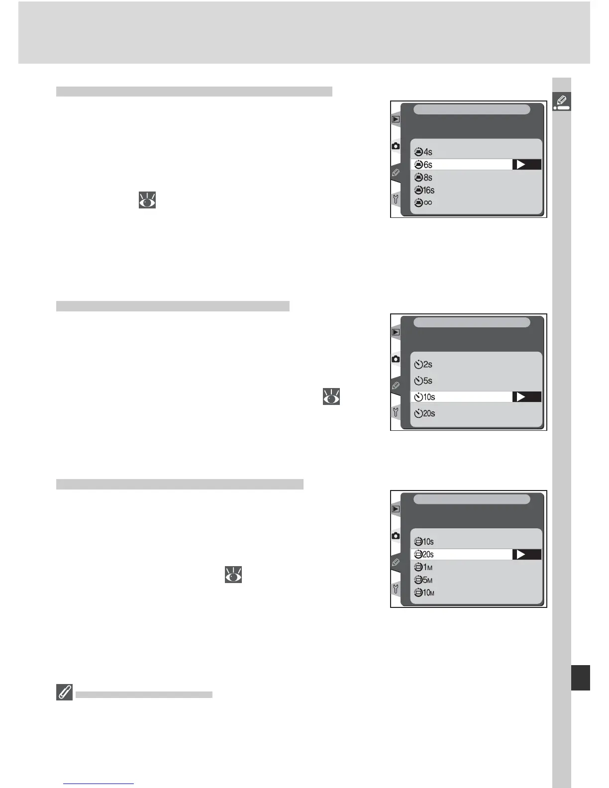 options chosen for Custom Settings c3 (Auto meter-off) and c5 (Monitor off).