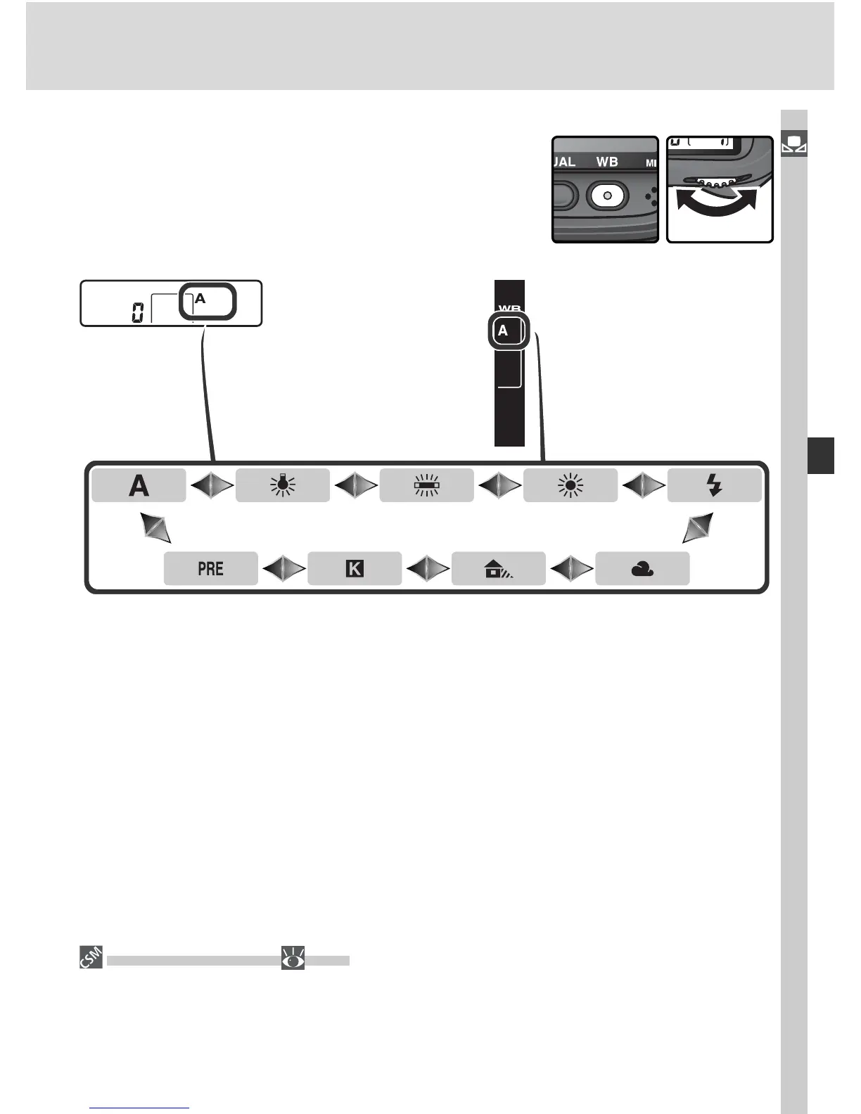 White balance can also be set by pressing the