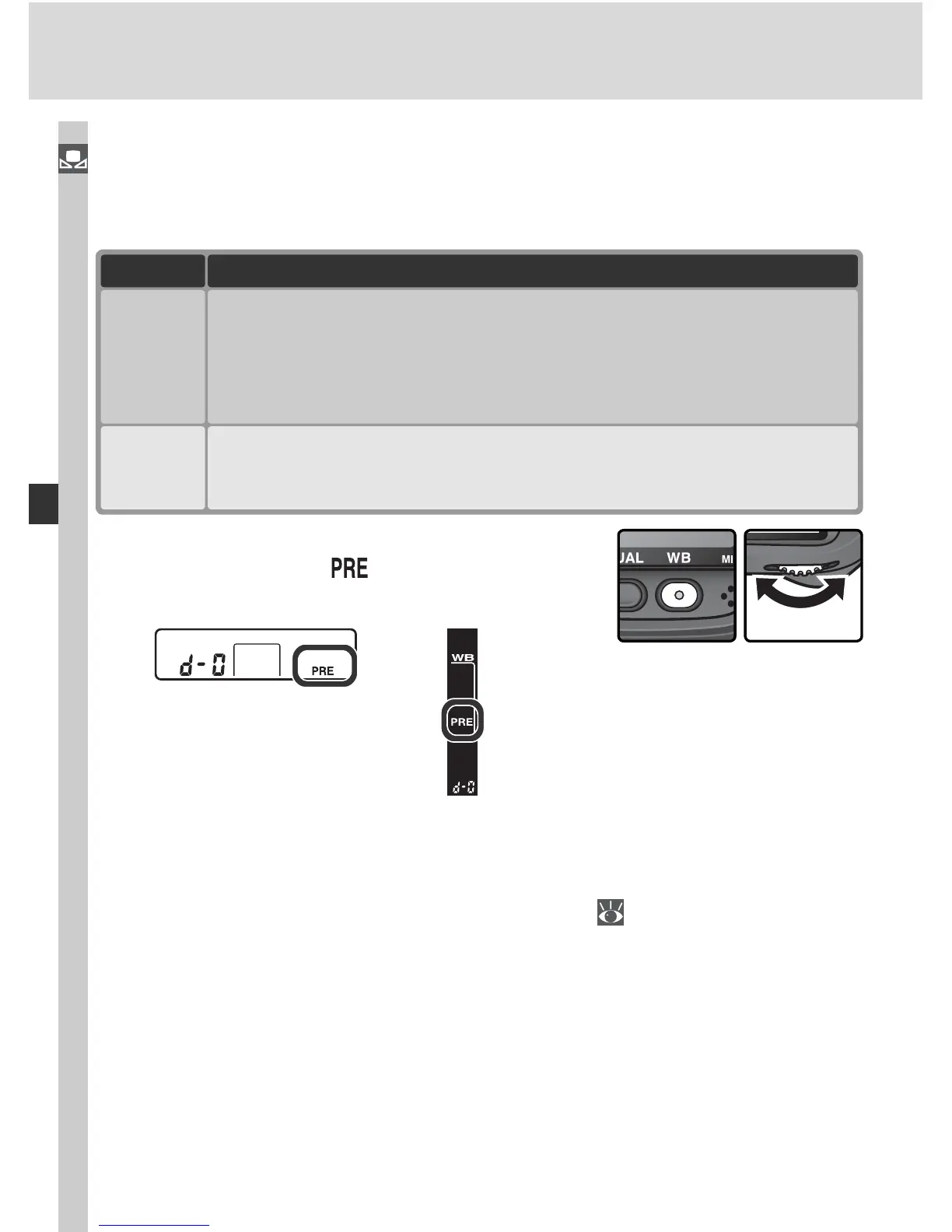 preset d-0 by pressing the WB button and rotating the sub-command dial