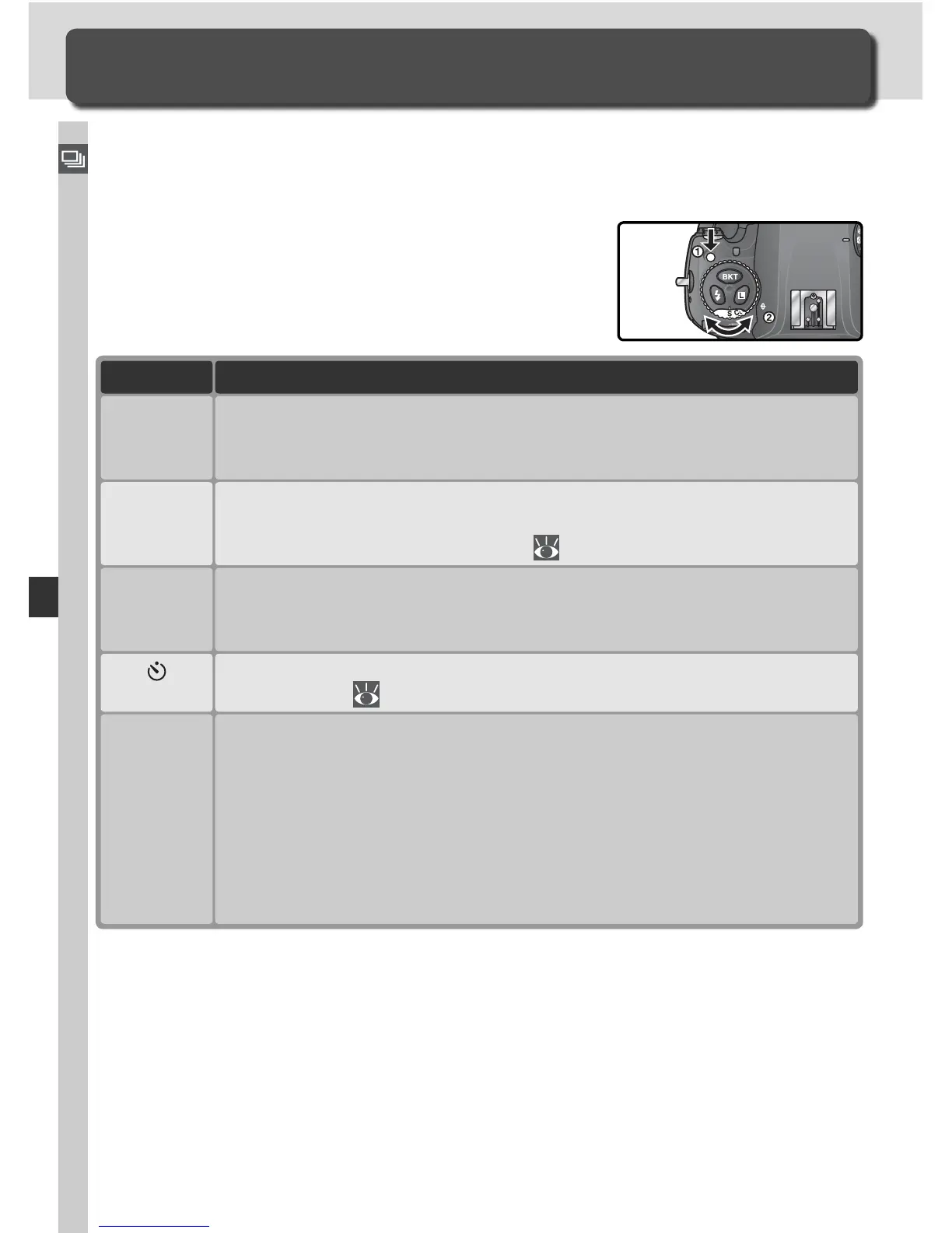 Single Frame, Continuous, Self-Timer, or Mirror Up