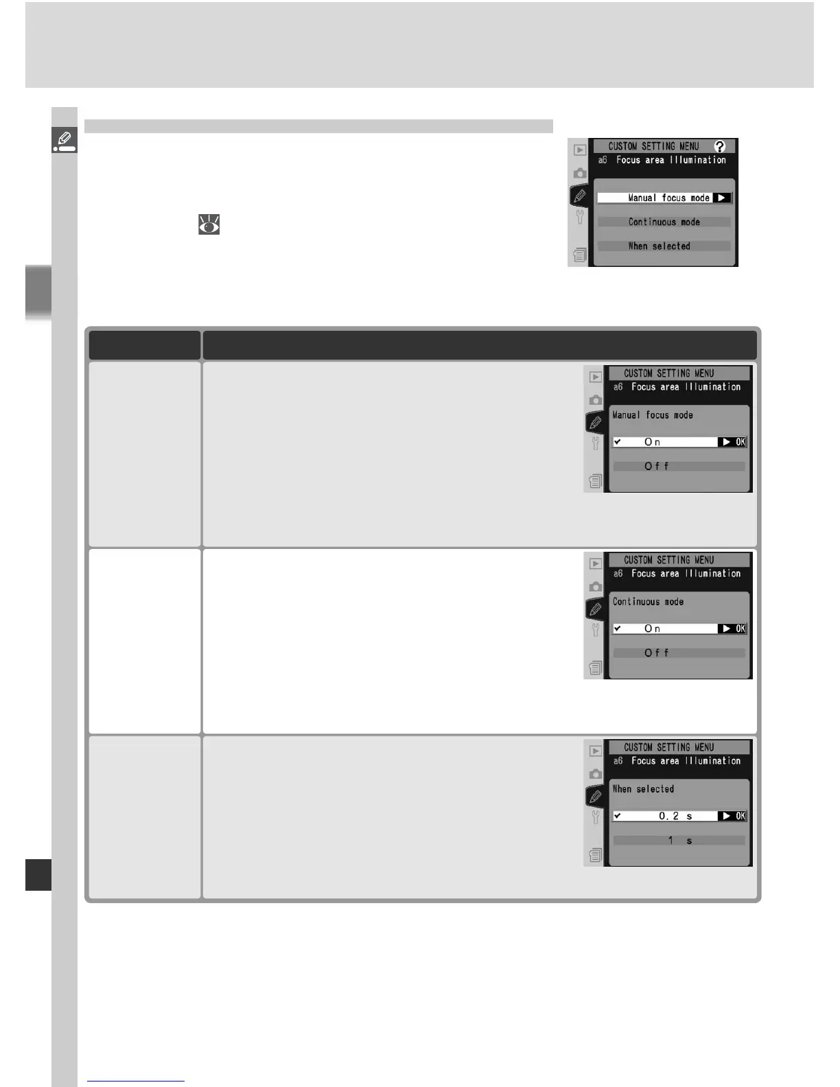 Custom Setting a6: Focus Area Illumination