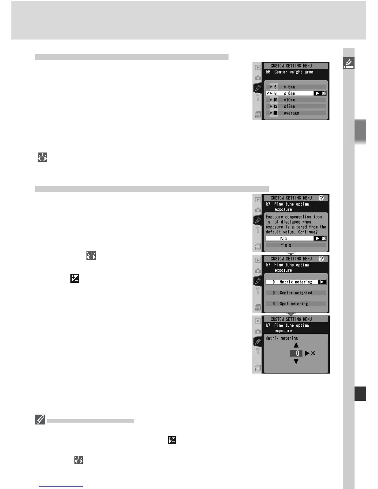 Exposure can be fi ne-tuned separately for each Custom Settings bank. Note that
