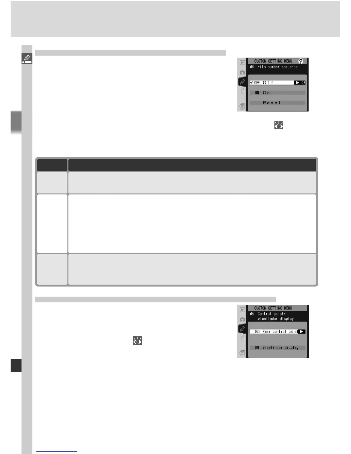 Custom Setting d5: Control Panel / Viewfi nder Display
