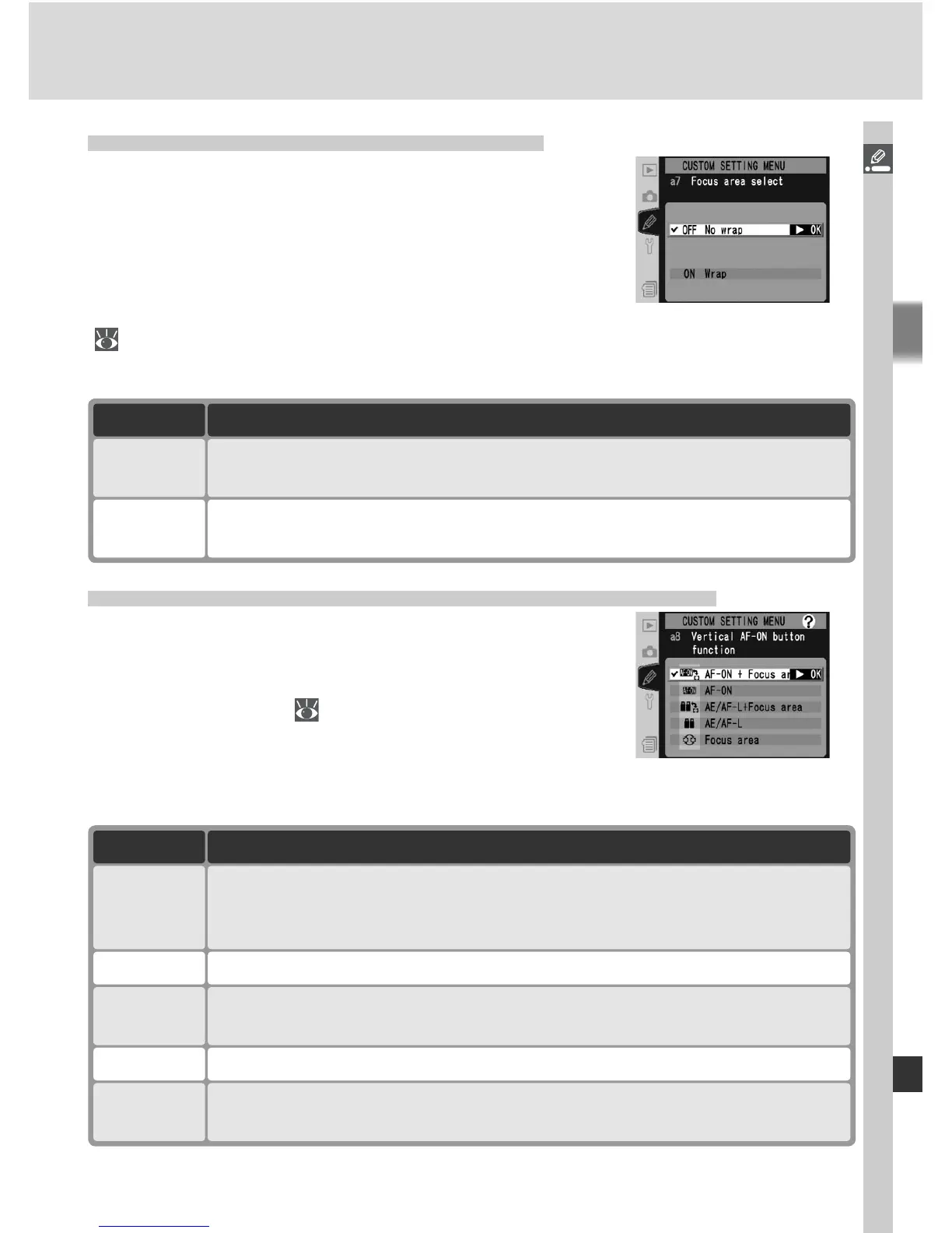 As for AF-ON+Focus area, except that pressing vertical AF-ON button