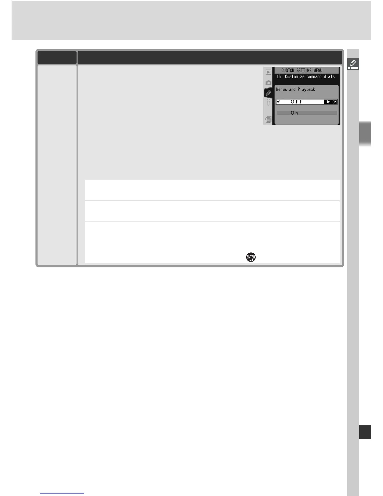 • On: Main command dial performs same function as pressing multi