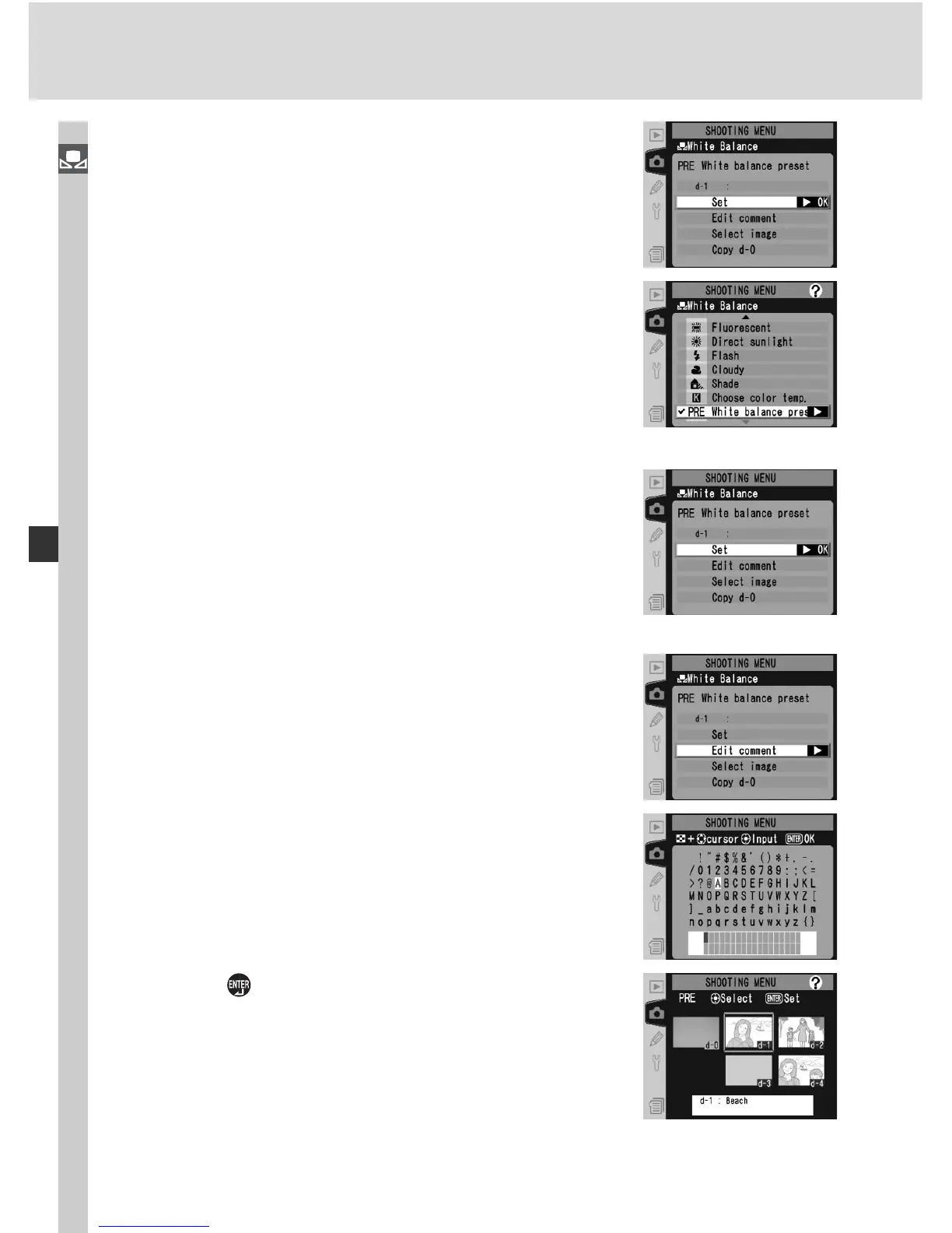 characters for a selected white balance preset,