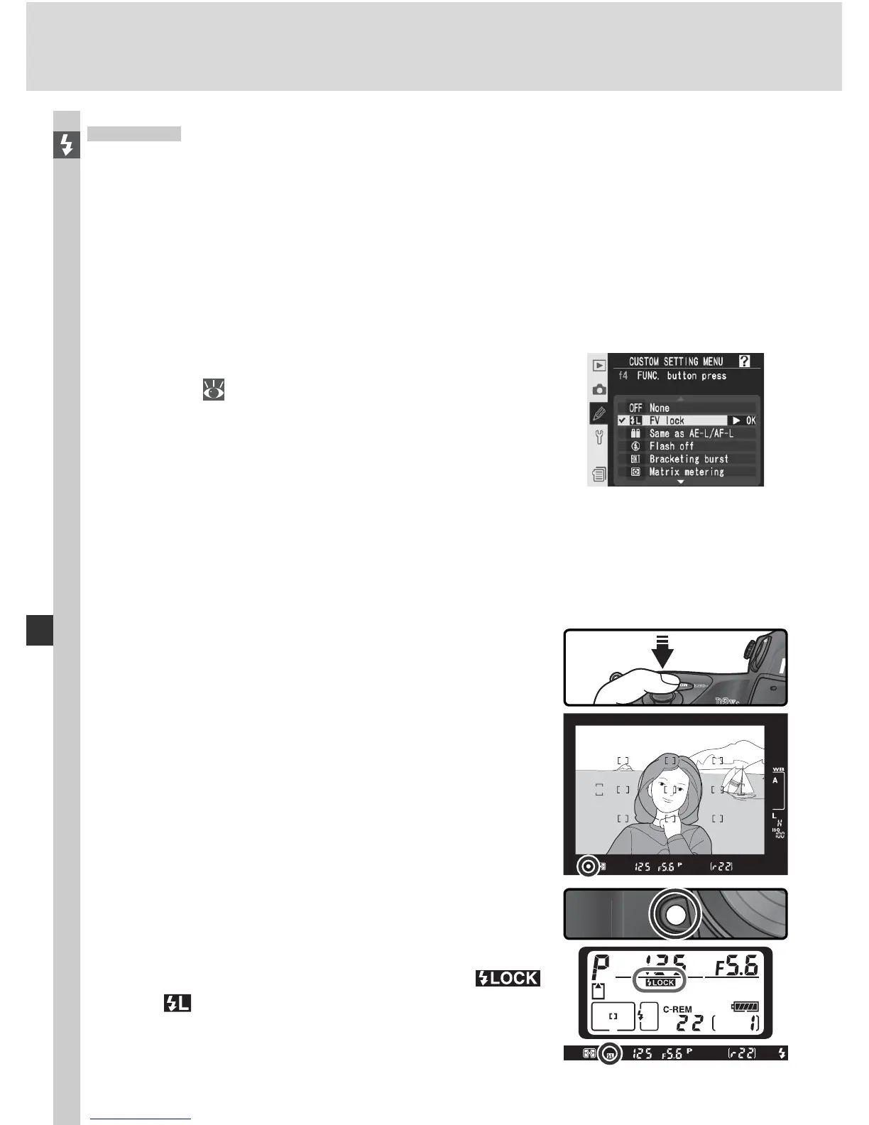 Select FV lock for Custom Setting f4 (FUNC.