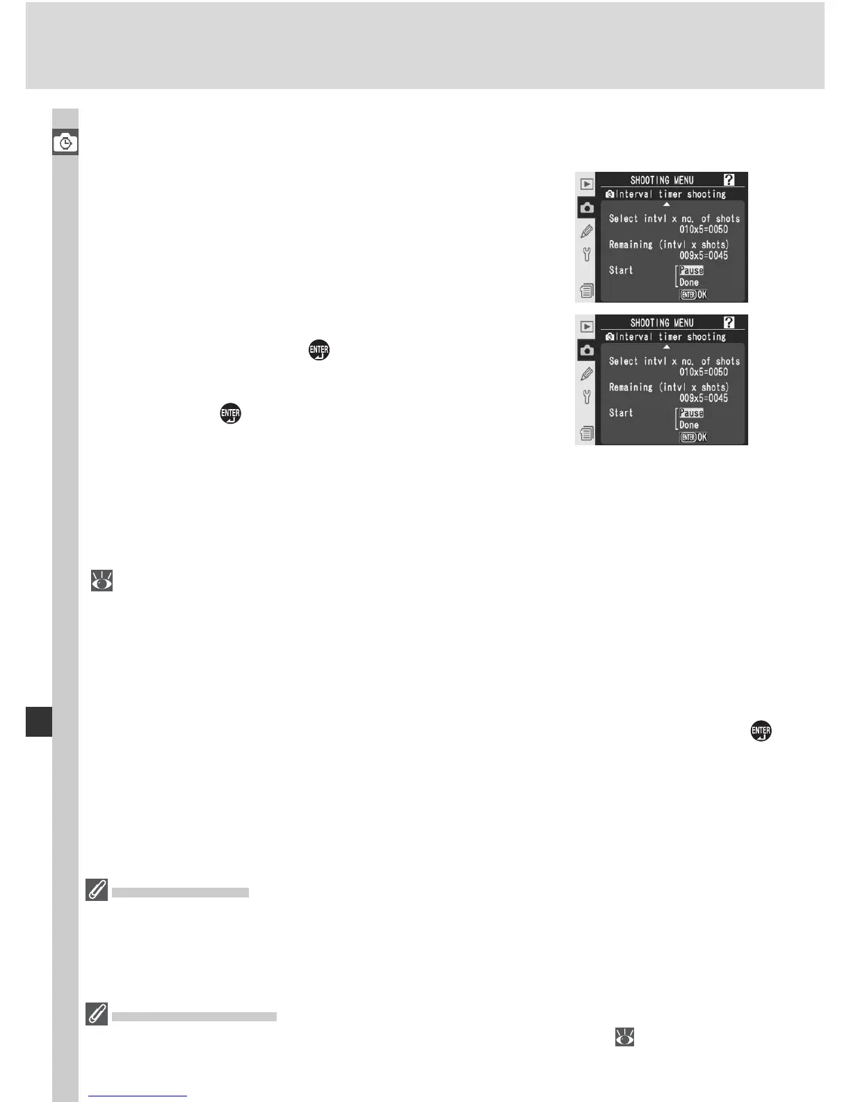 changed. If interval timer photography is paused during shooting, any shots
