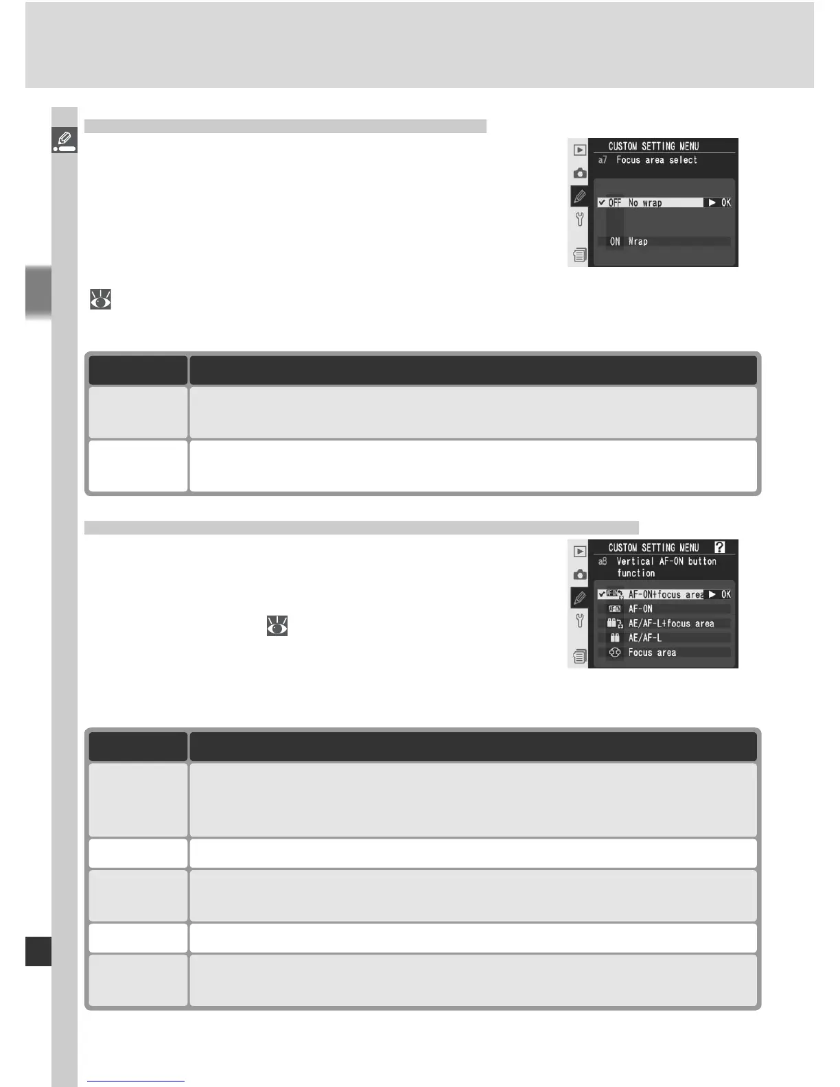 As for AF-ON+focus area, except that pressing vertical AF-ON button