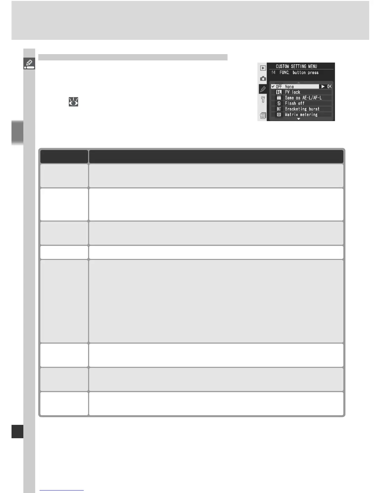 Custom Setting f4: FUNC. Button Press