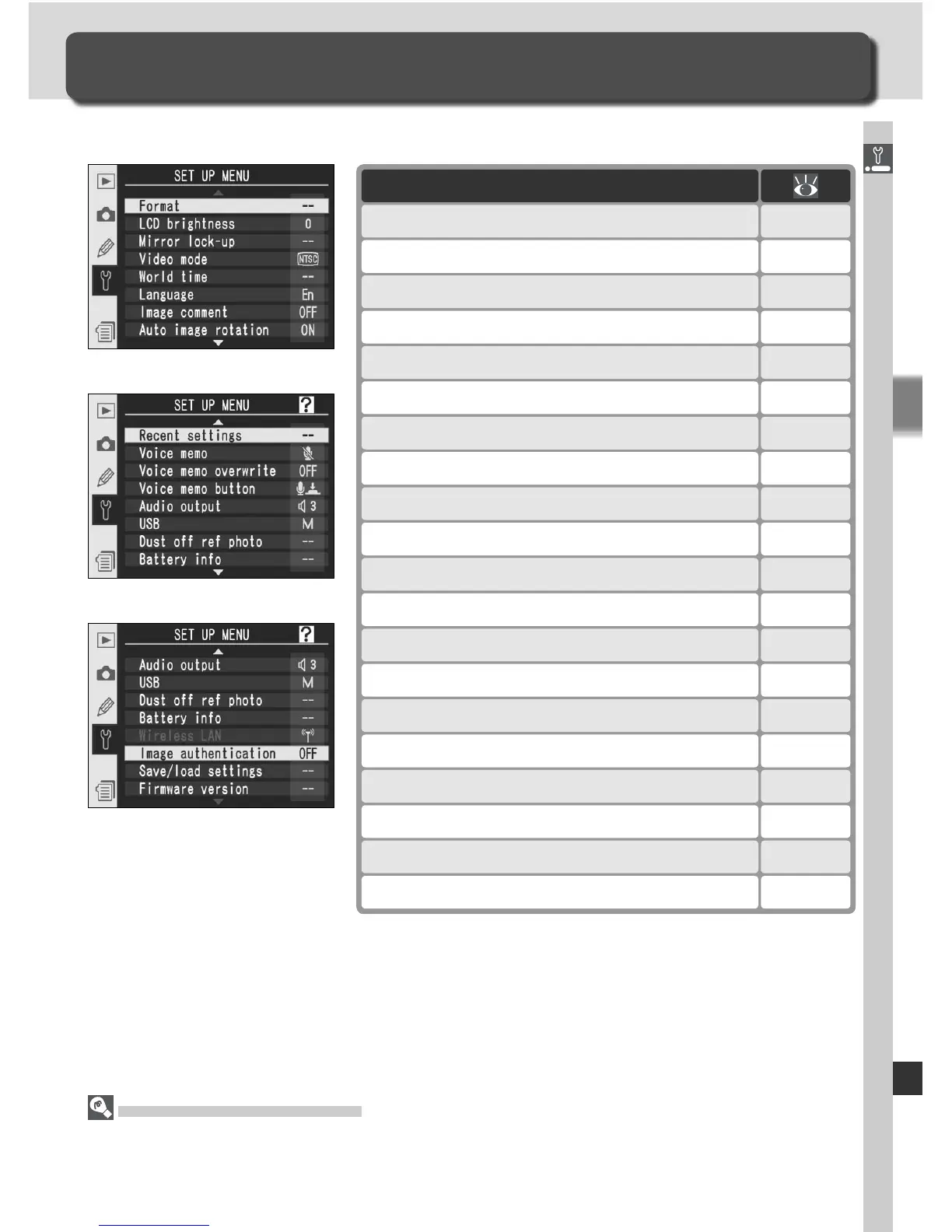 Menu Guide—The Setup Menu