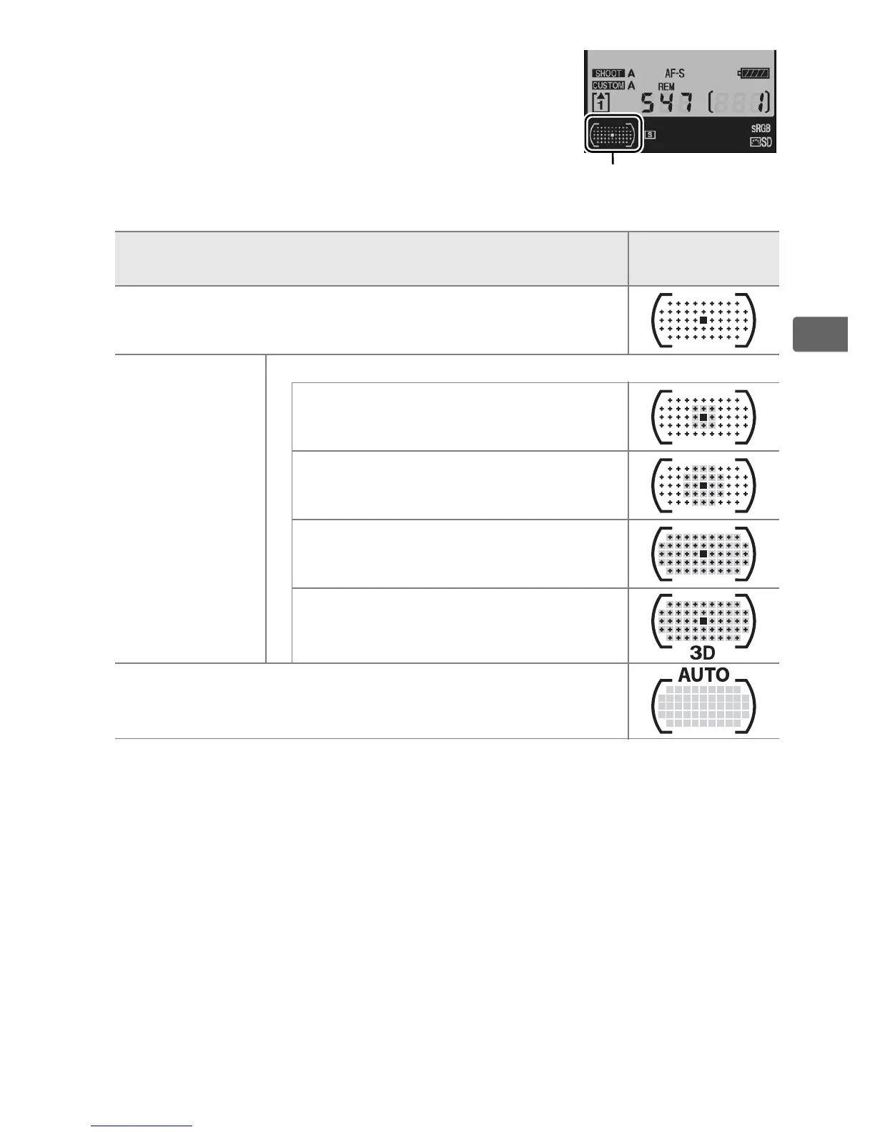 * Only active focus point is displayed in the viewfinder. Remaining focus