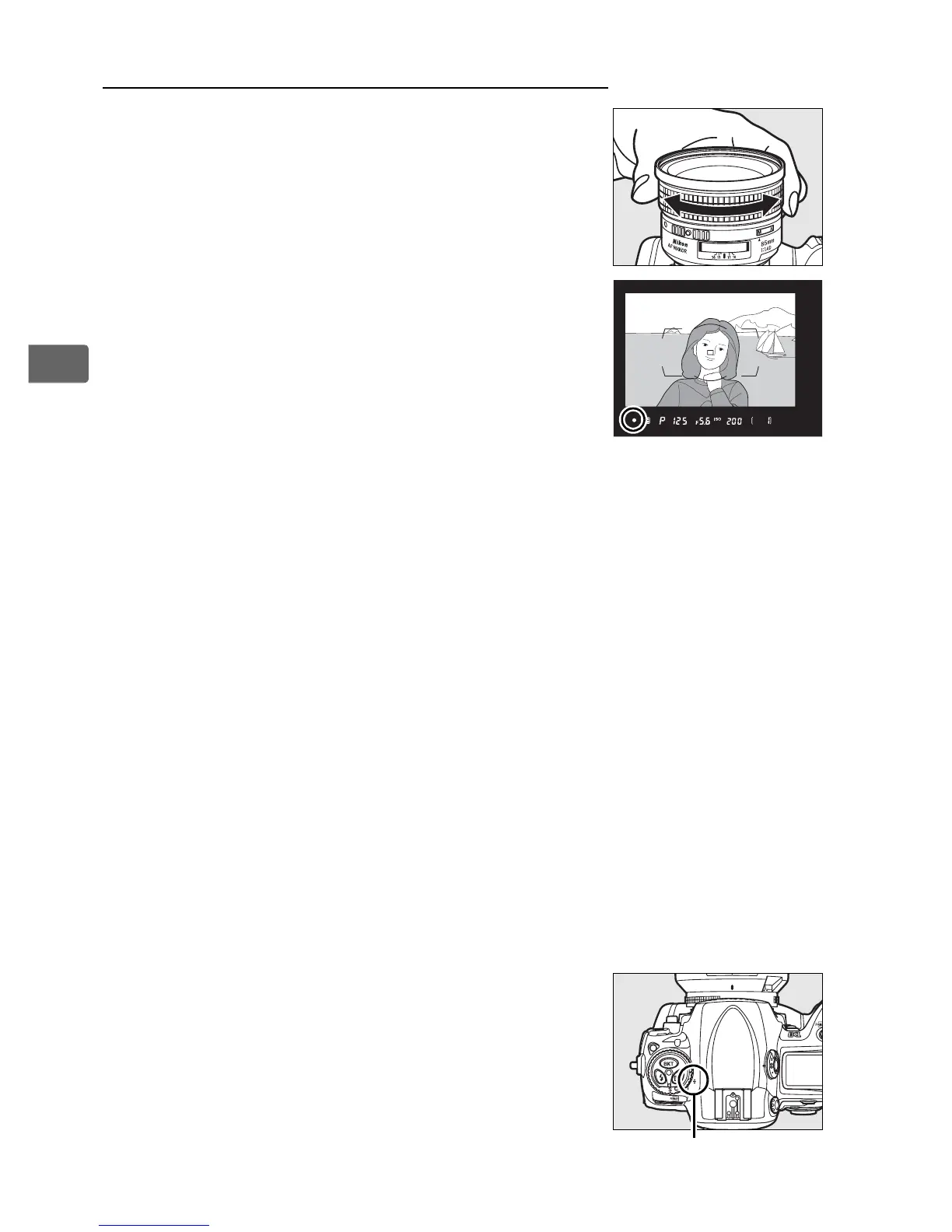 focus; confirm focus in the viewfinder