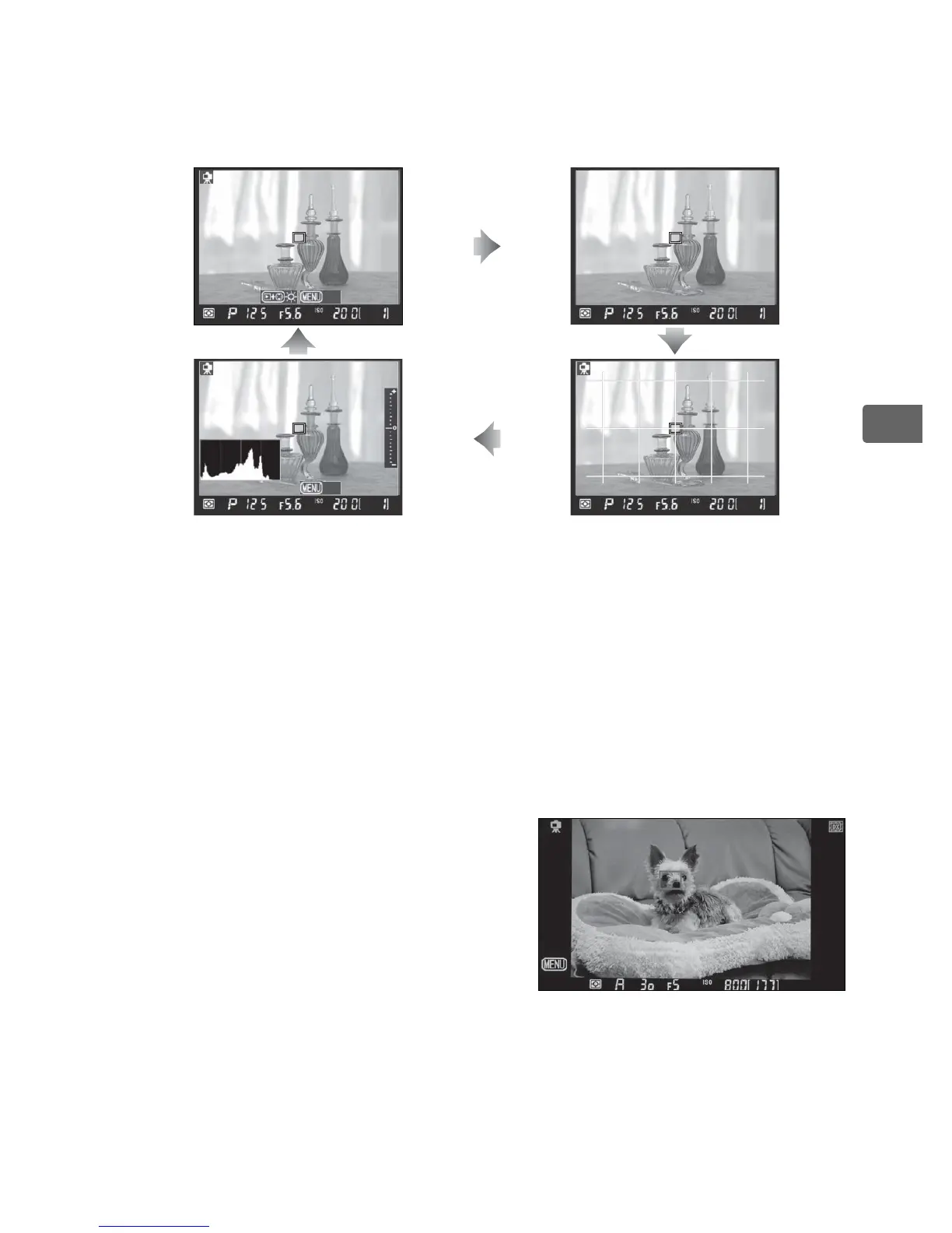 1 Only displayed during exposure preview (tripod mode; pg. 99).