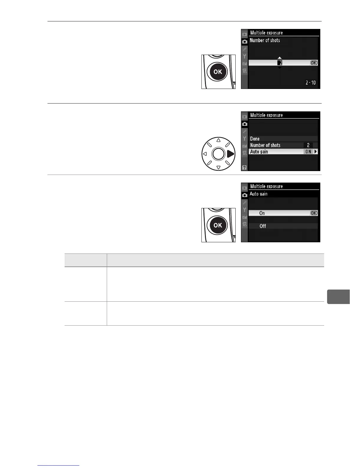Gain is not adjusted when recording multiple exposure.