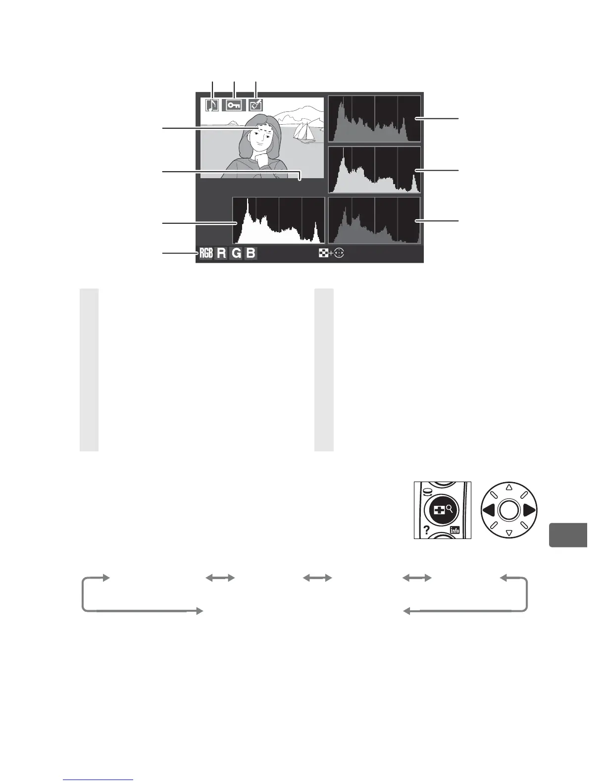 1 Displayed only if [RGB histogram] is selected for [Display mode] (pg. 282).