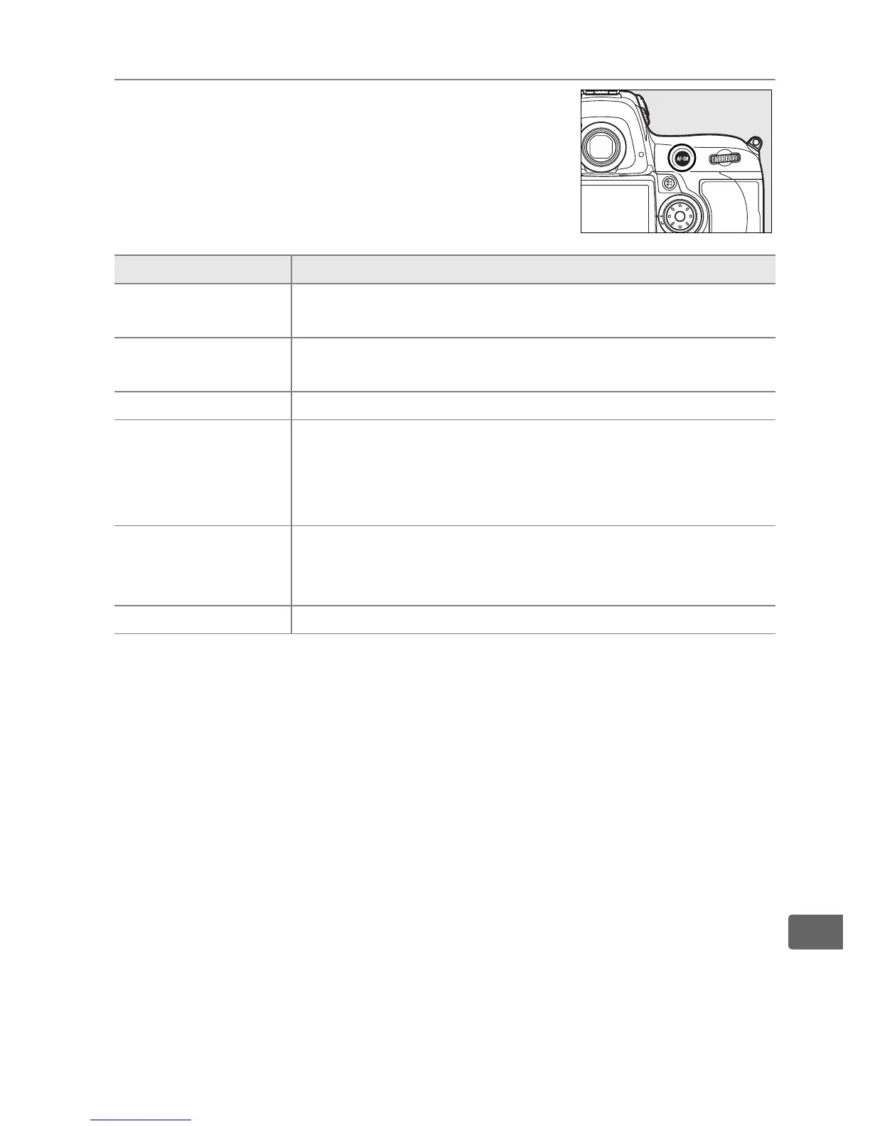 C AE lock only Exposure locks while the B button is pressed.