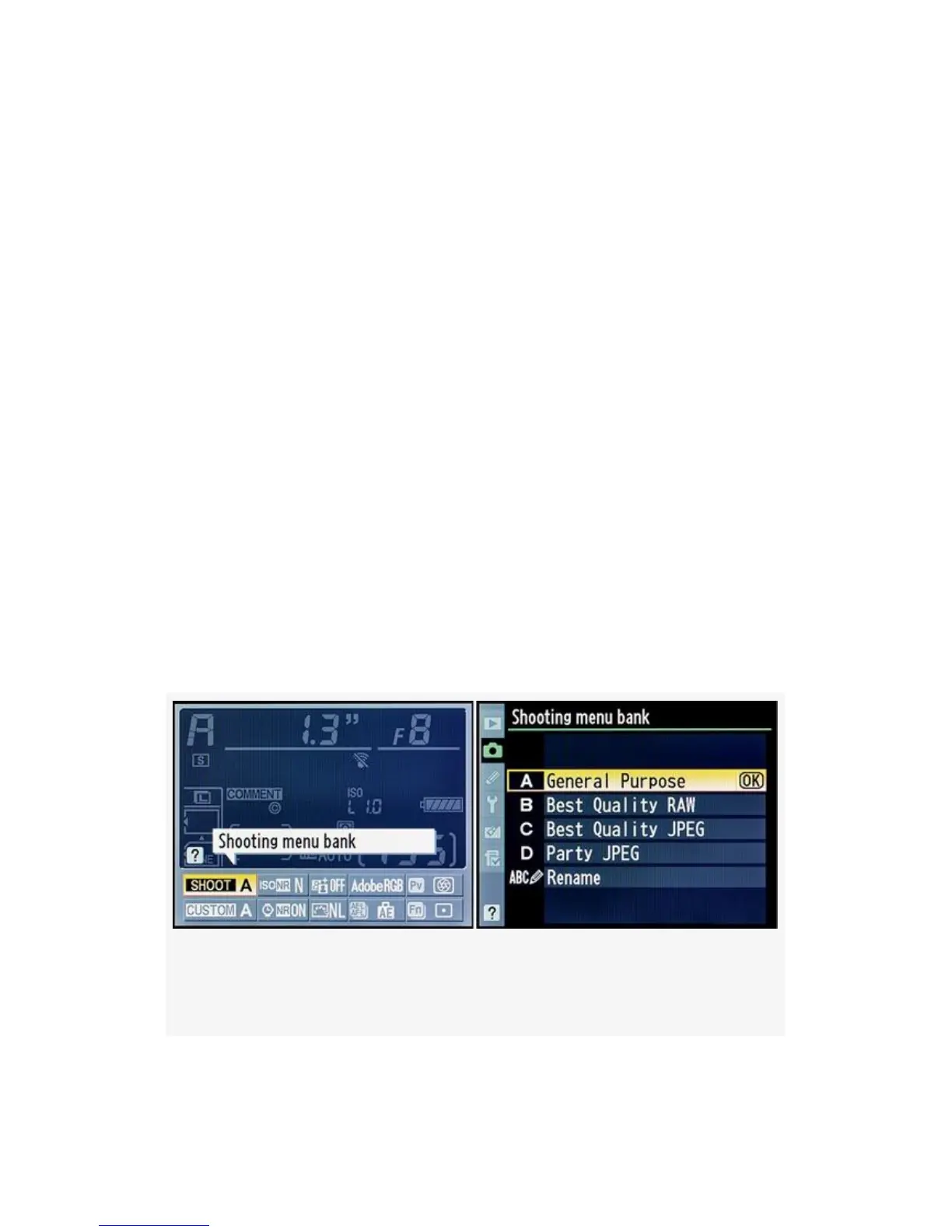 The Shooting menu bank selection is also available in the