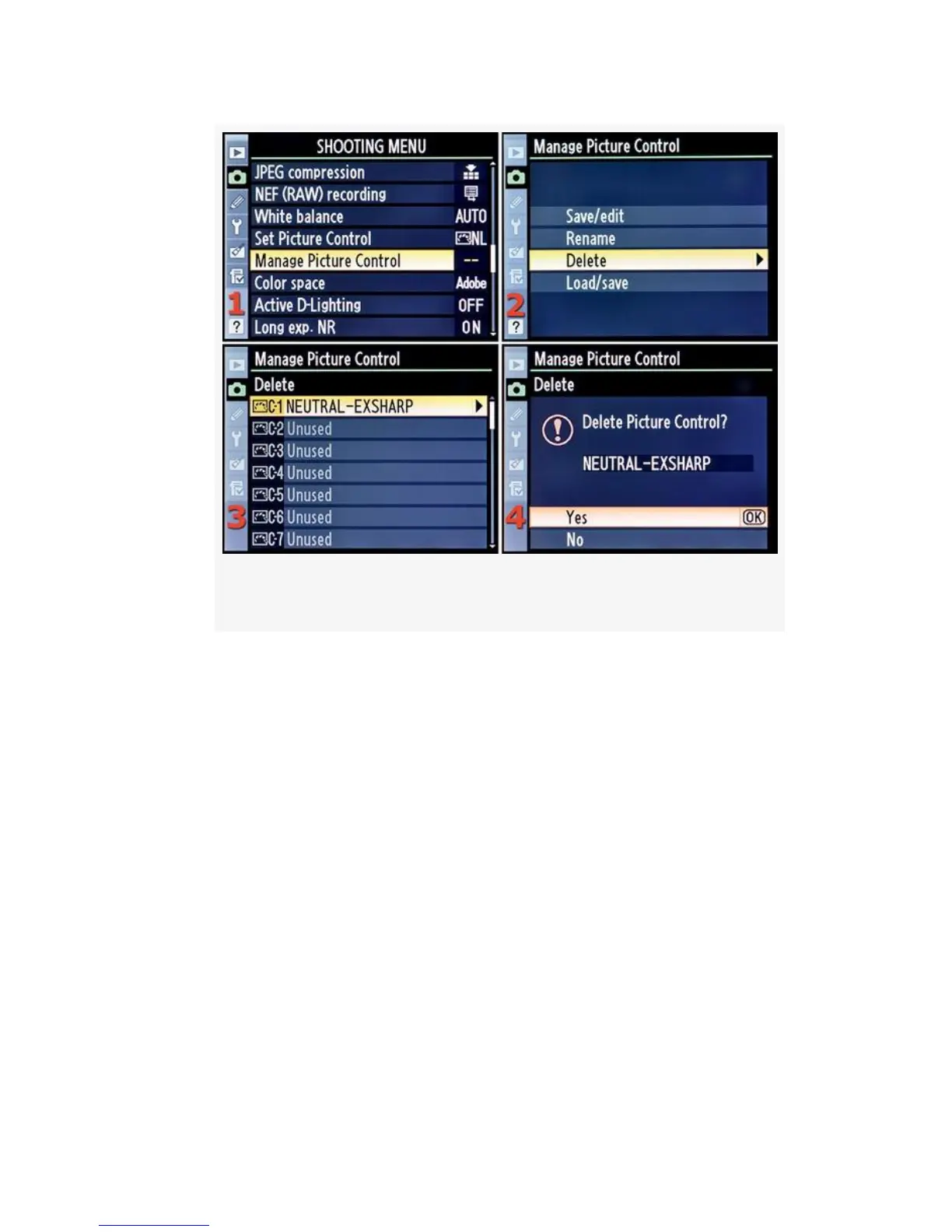 Figure 3-30. Delete a Custom Picture Control