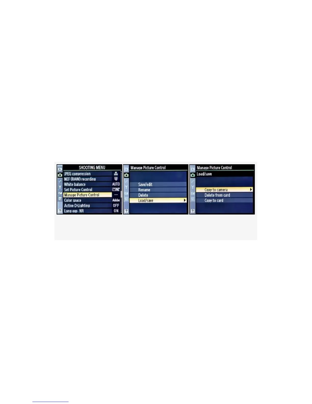 you to copy Custom Picture Controls to and from the memory
