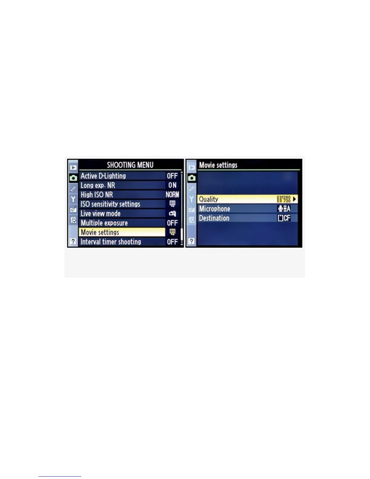 Movie Settings (D300S Only)