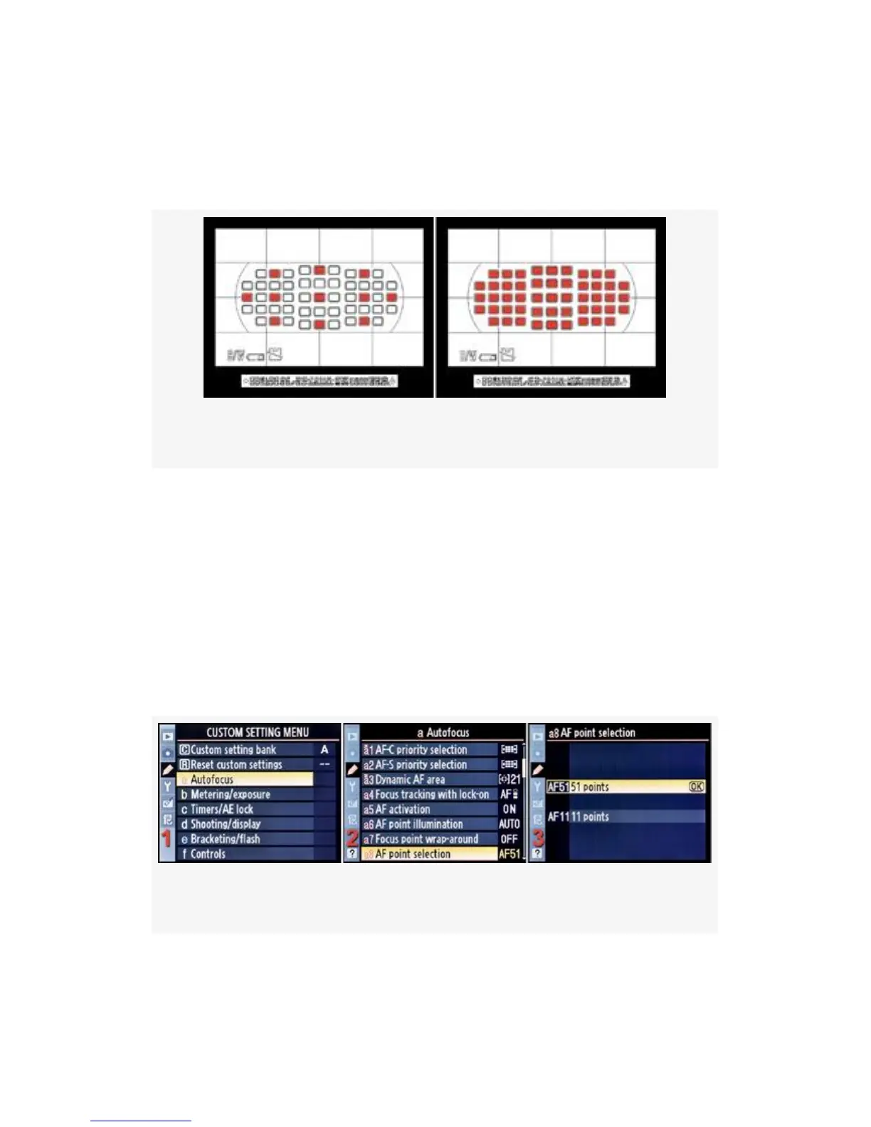 1. Select a Autofocus from the Custom Setting Menu and