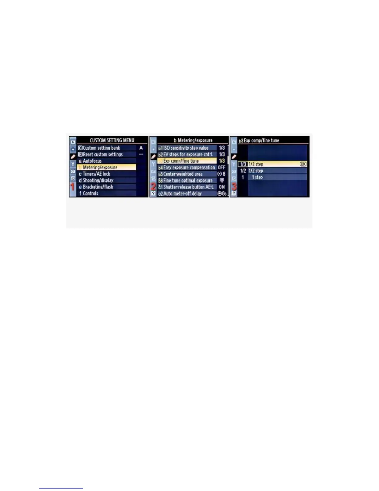 Here are the screens and steps used to adjust Exp comp/fine