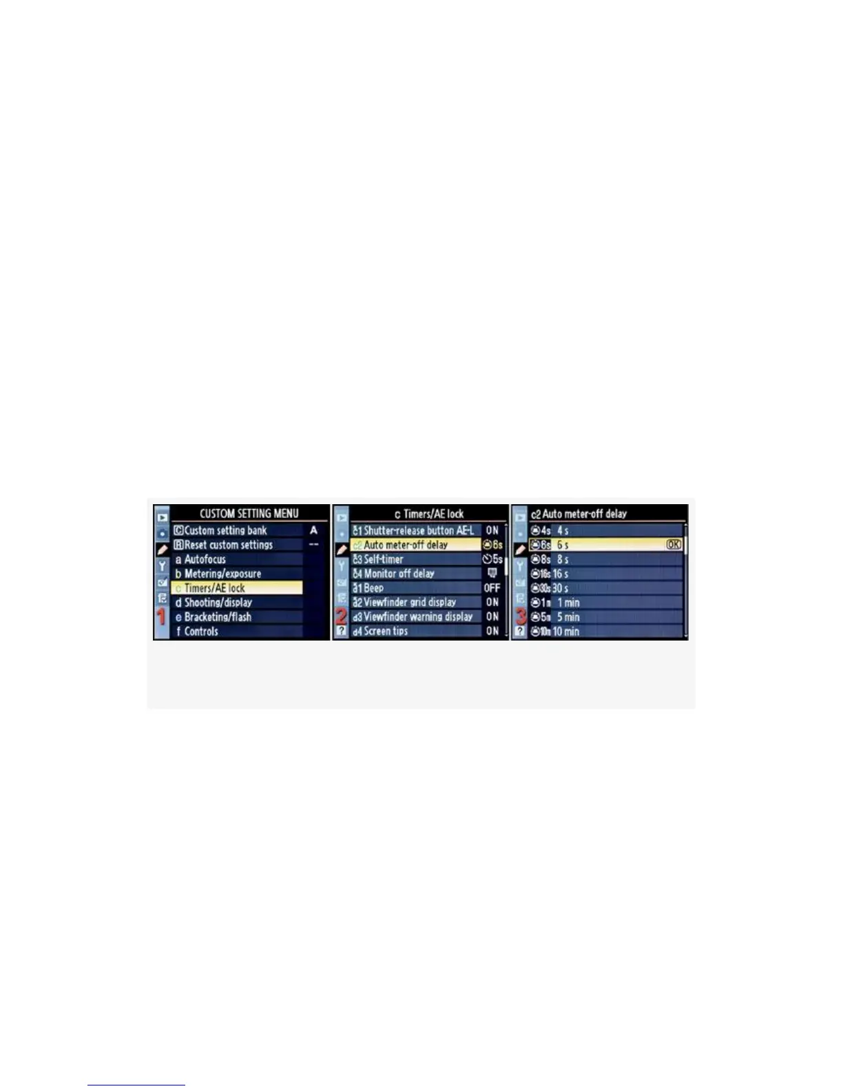 1. Select c Timers/AE lock from the Custom Setting Menu