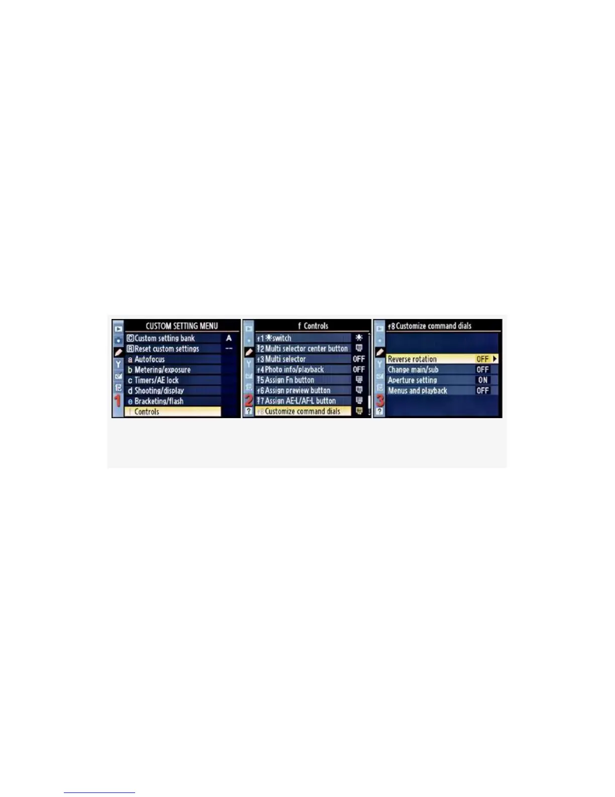 1. Select f Controls from the Custom Setting Menu and