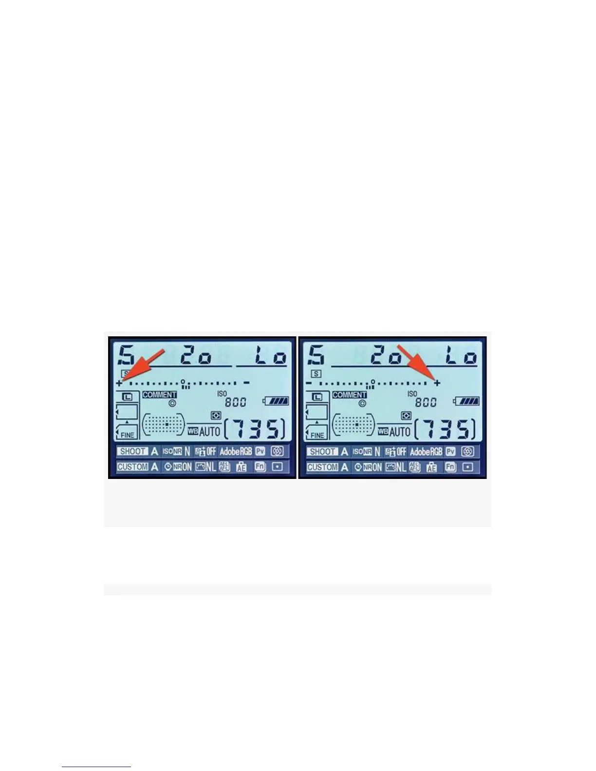 Viewfinder, or the Information display, the + is on the left,