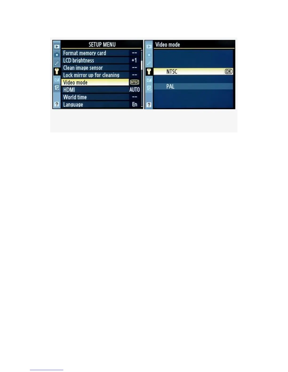 2. Choose NTSC or PAL from the menu shown in